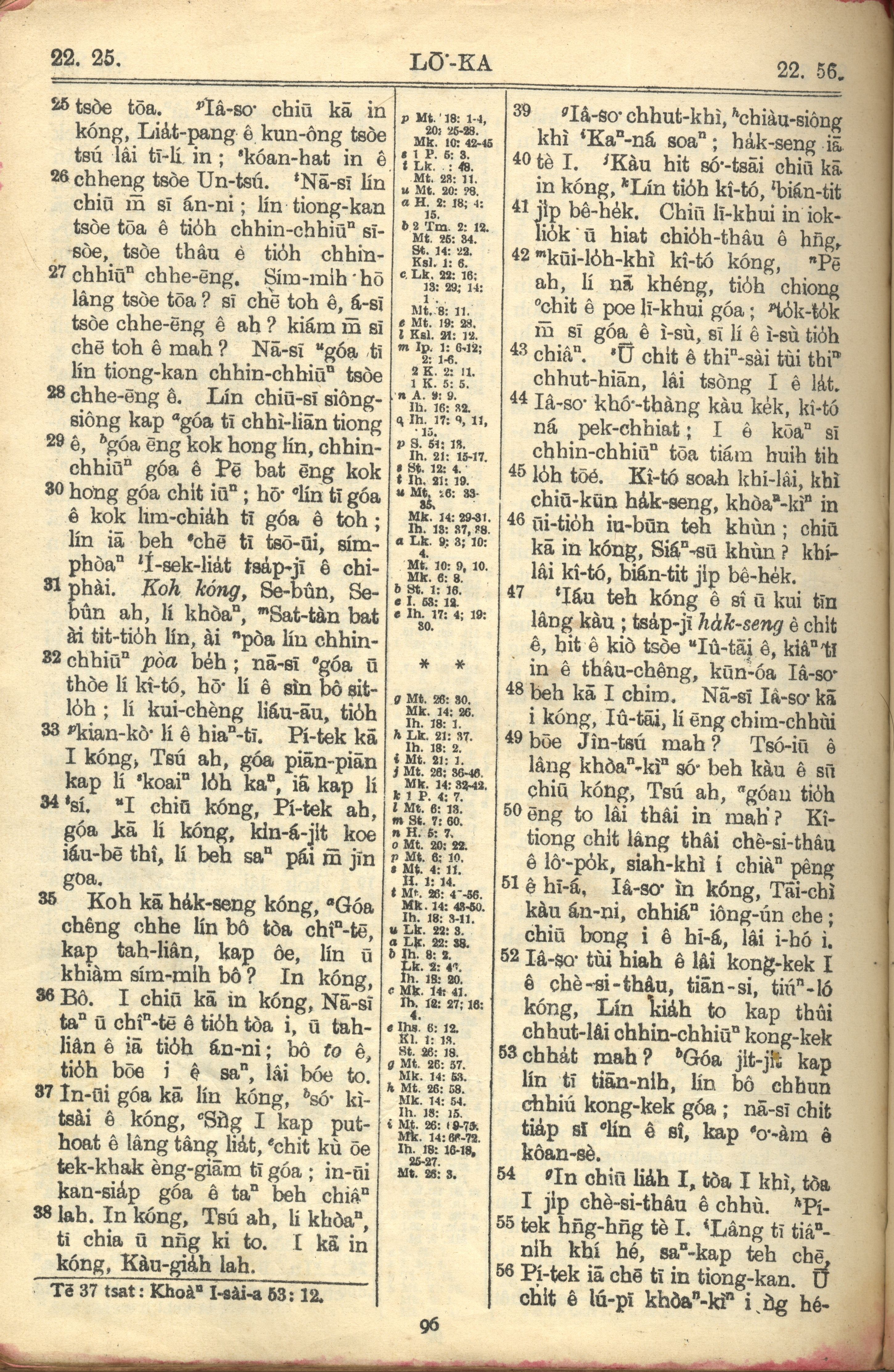 1957年巴克禮全羅台語聖經串珠版 路加福音 22 章 25 節到 22 章 56 節