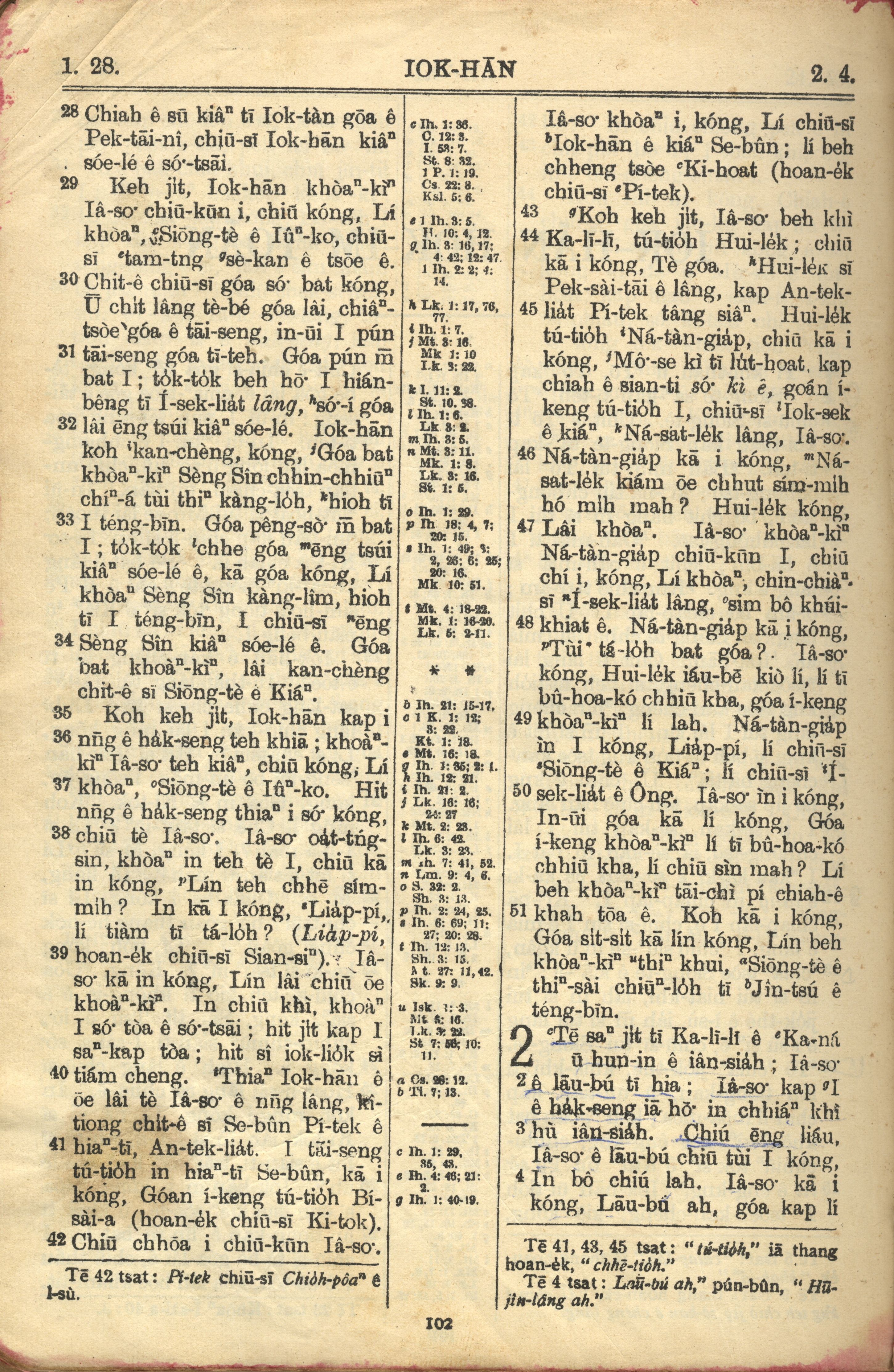 1957年巴克禮全羅台語聖經串珠版 約翰福音 1 章 28 節到 2 章 4 節