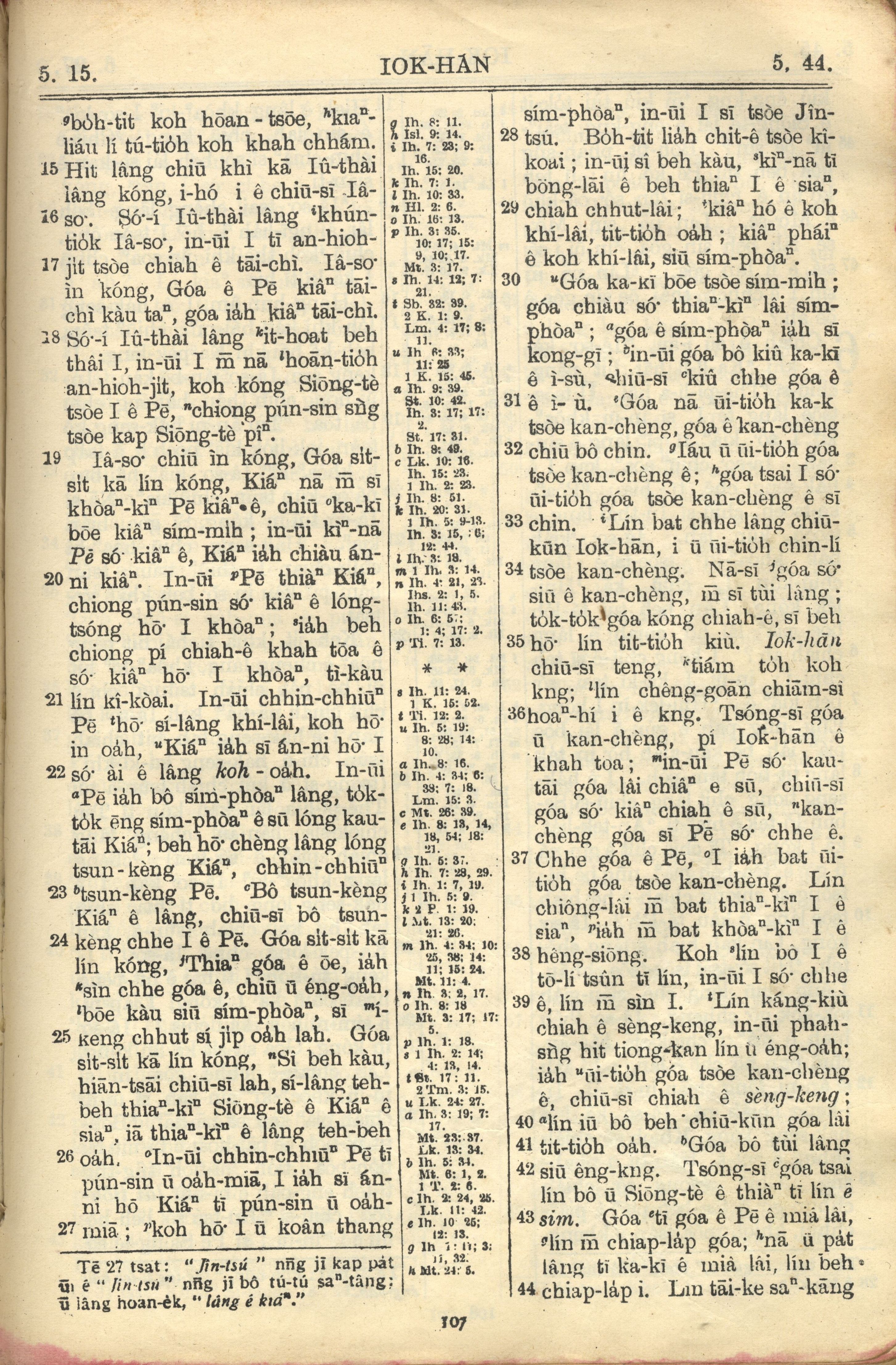 1957年巴克禮全羅台語聖經串珠版 約翰福音 5 章 15 節到 5 章 44 節