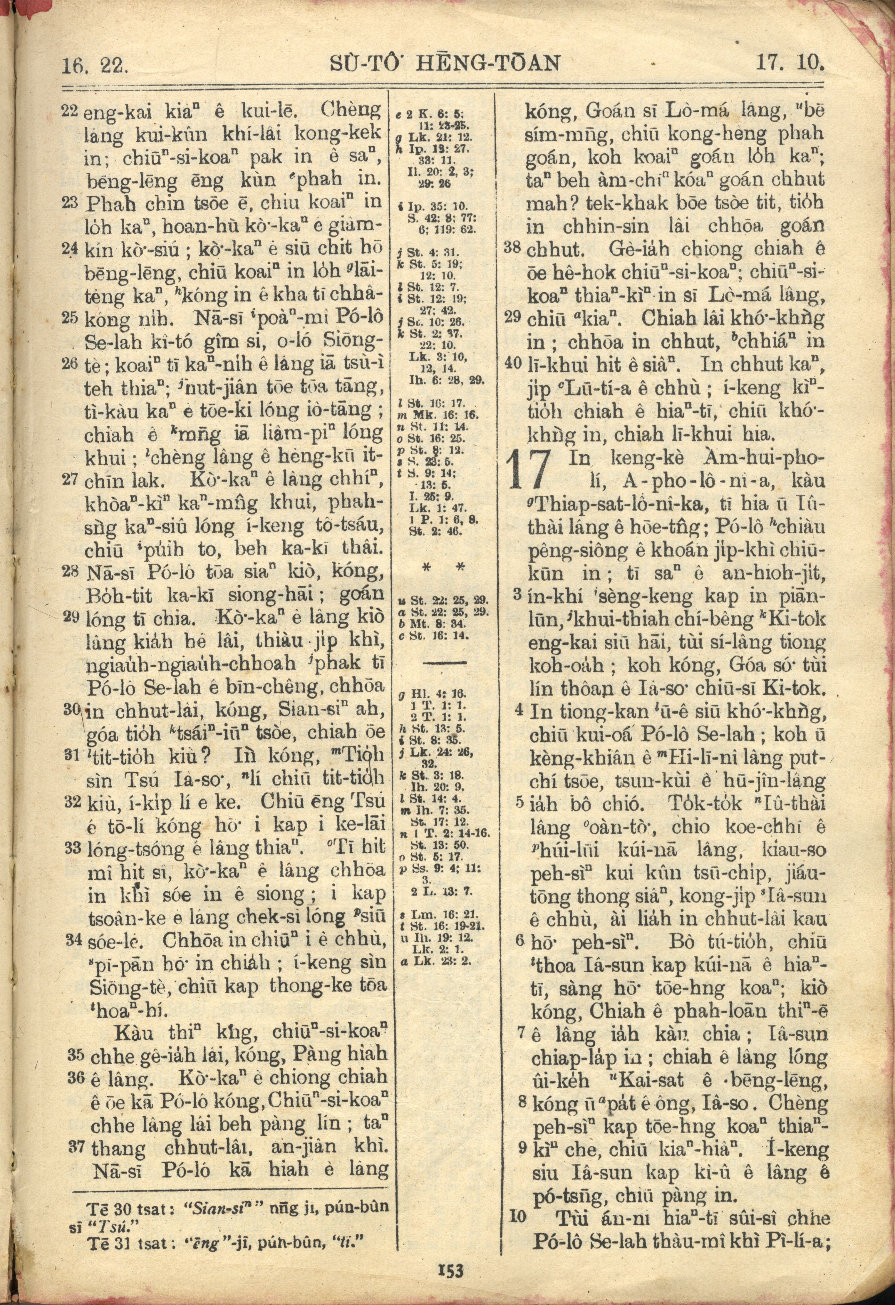 1957年巴克禮全羅台語聖經串珠版 使徒行傳 16 章 22 節到 17 章 10 節