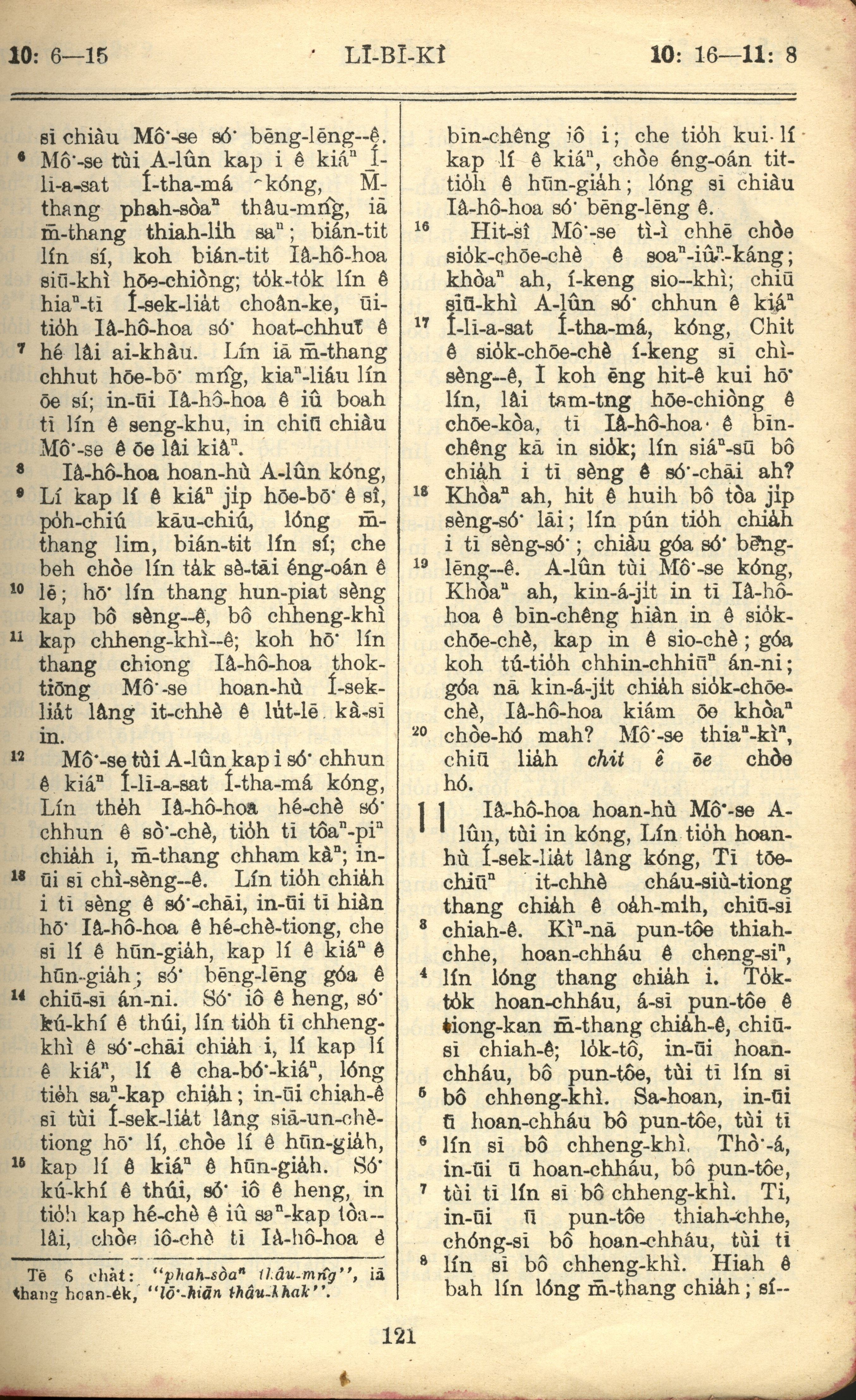 1957年巴克禮全羅台語聖經串珠版 利未記 10 章 6 節到 11 章 8 節