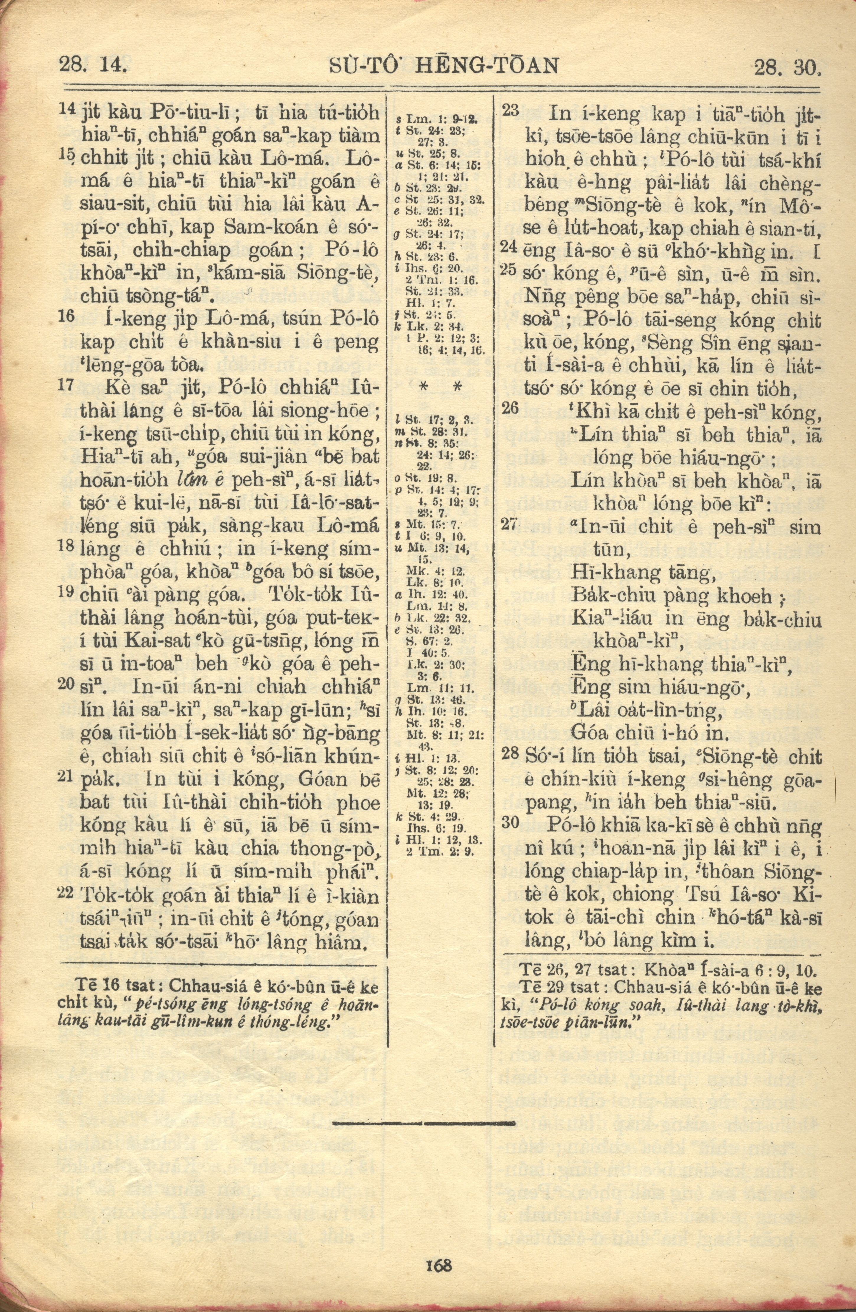 1957年巴克禮全羅台語聖經串珠版 使徒行傳 28 章 14 節到 28 章 30 節