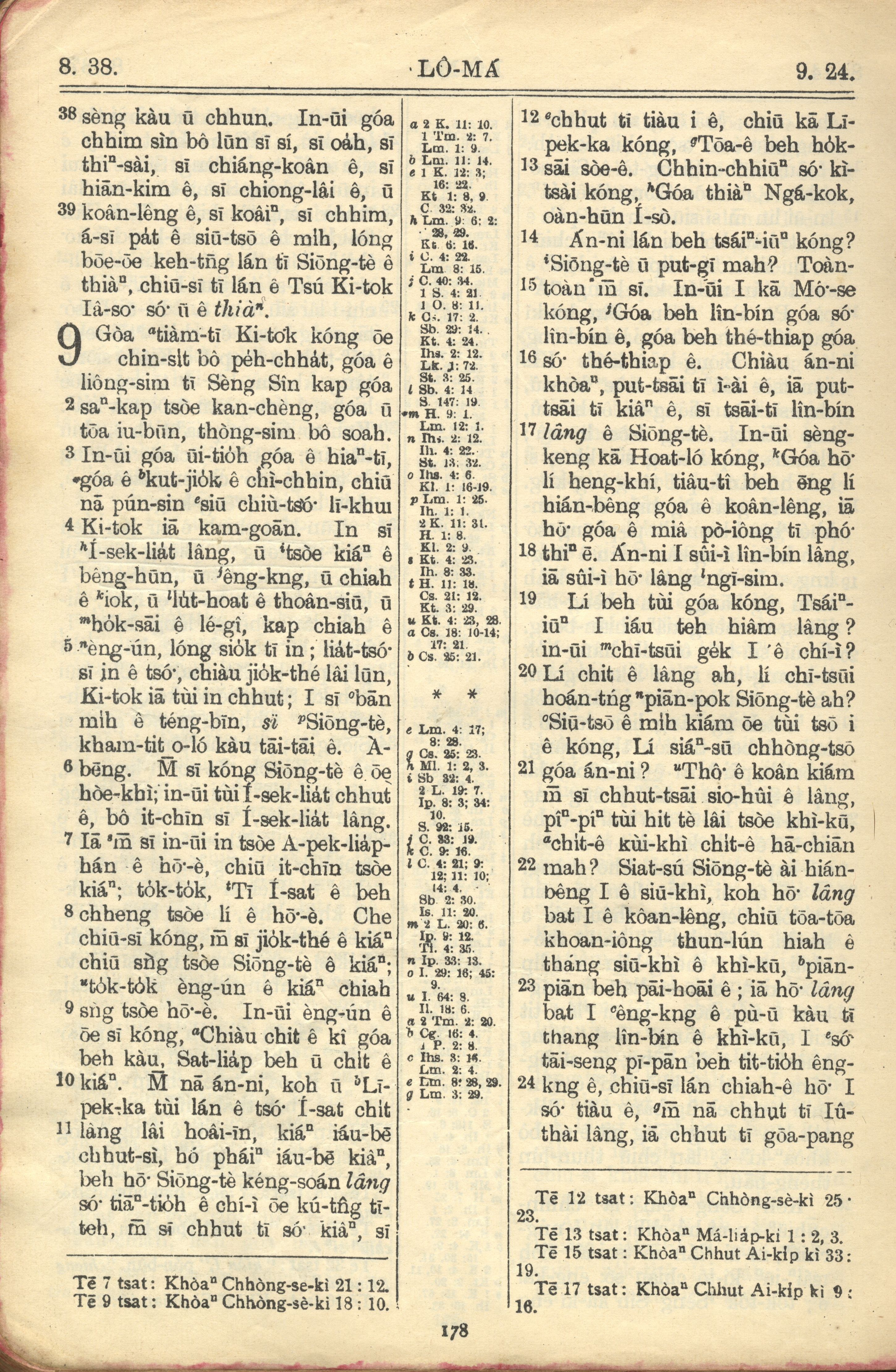 1957年巴克禮全羅台語聖經串珠版 羅馬書 8 章 38 節到 9 章 24 節