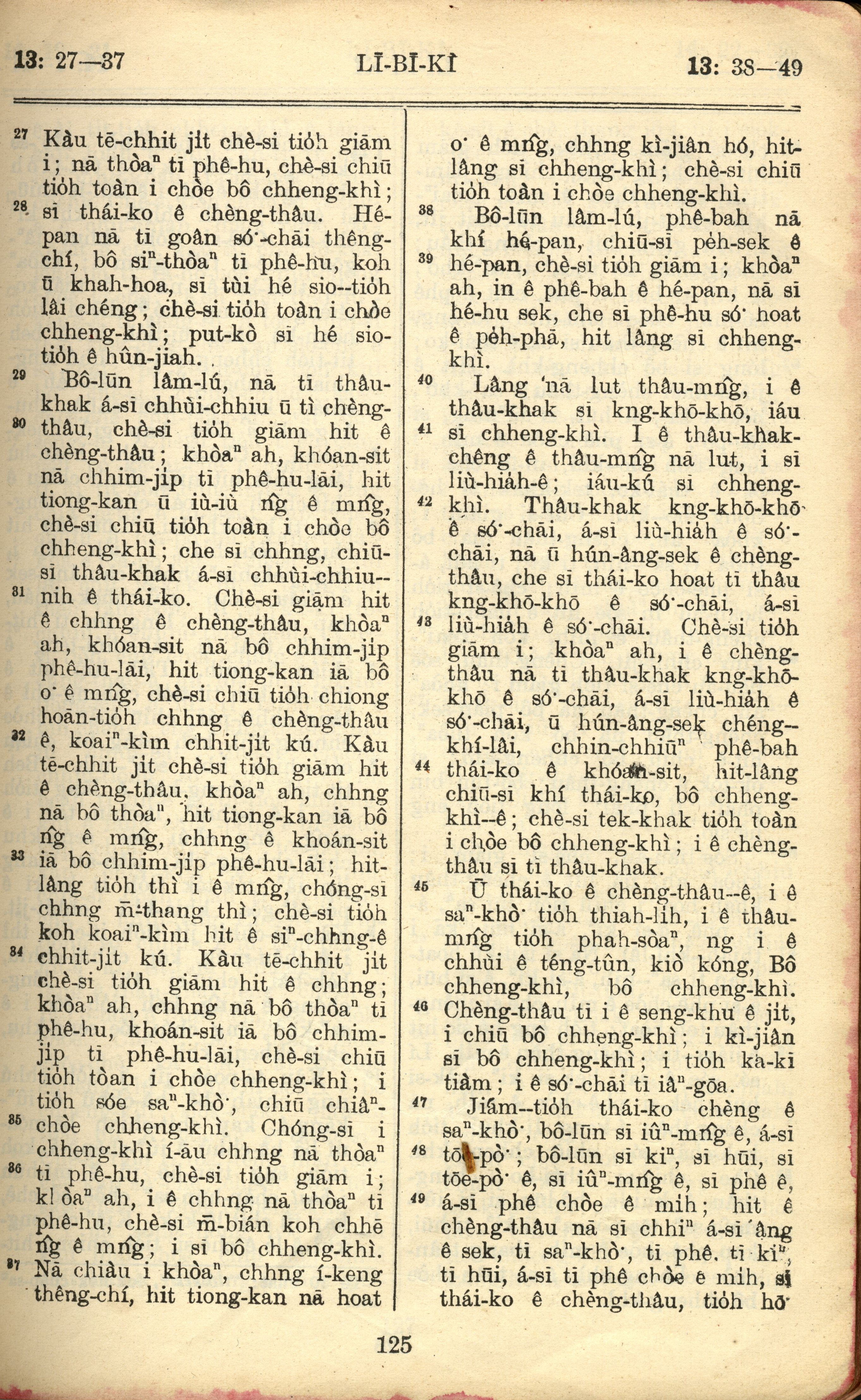 1957年巴克禮全羅台語聖經串珠版 利未記 13 章 27 節到 13 章 49 節