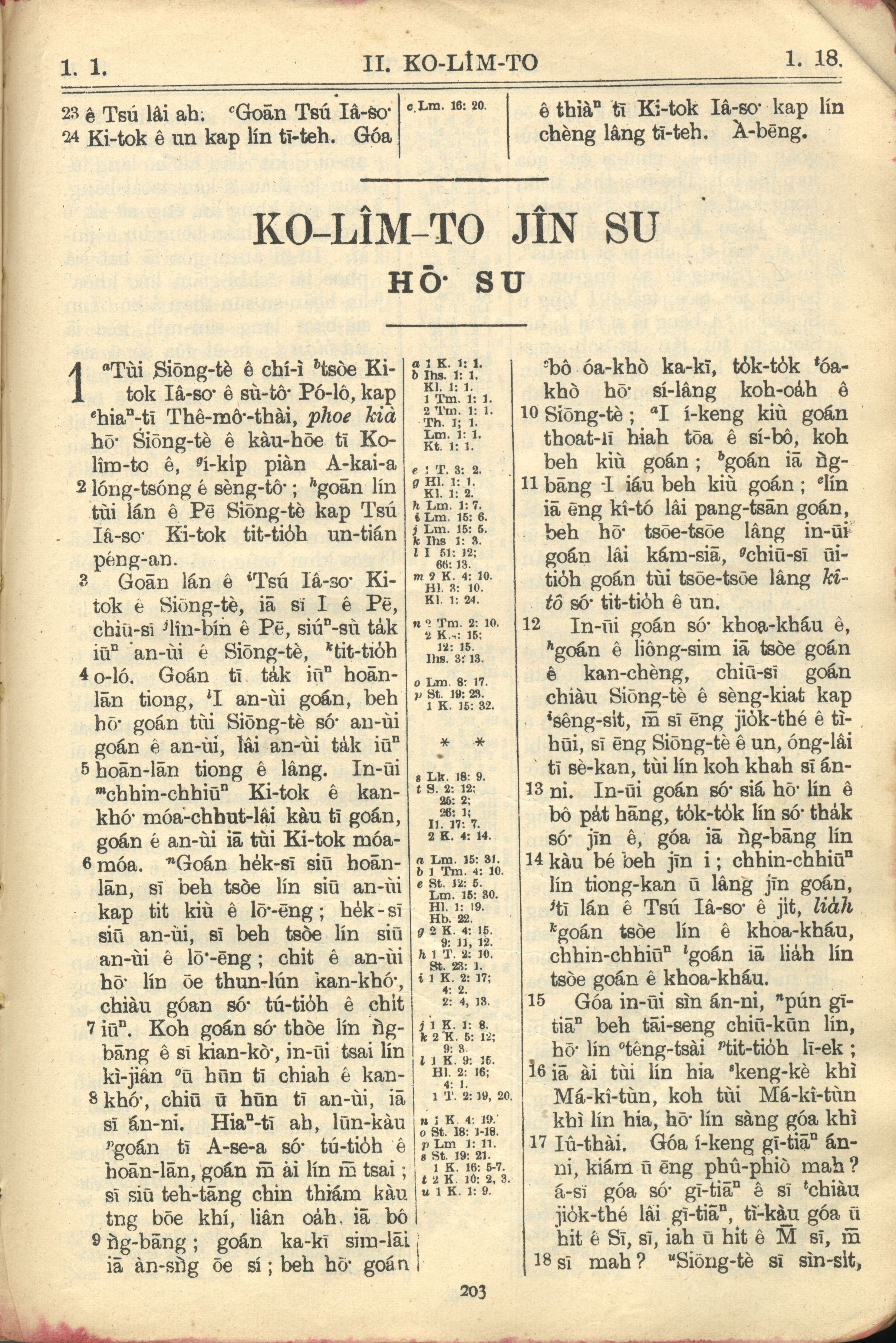 1957年巴克禮全羅台語聖經串珠版 哥林多後書 1 章 1 節到 1 章 18 節