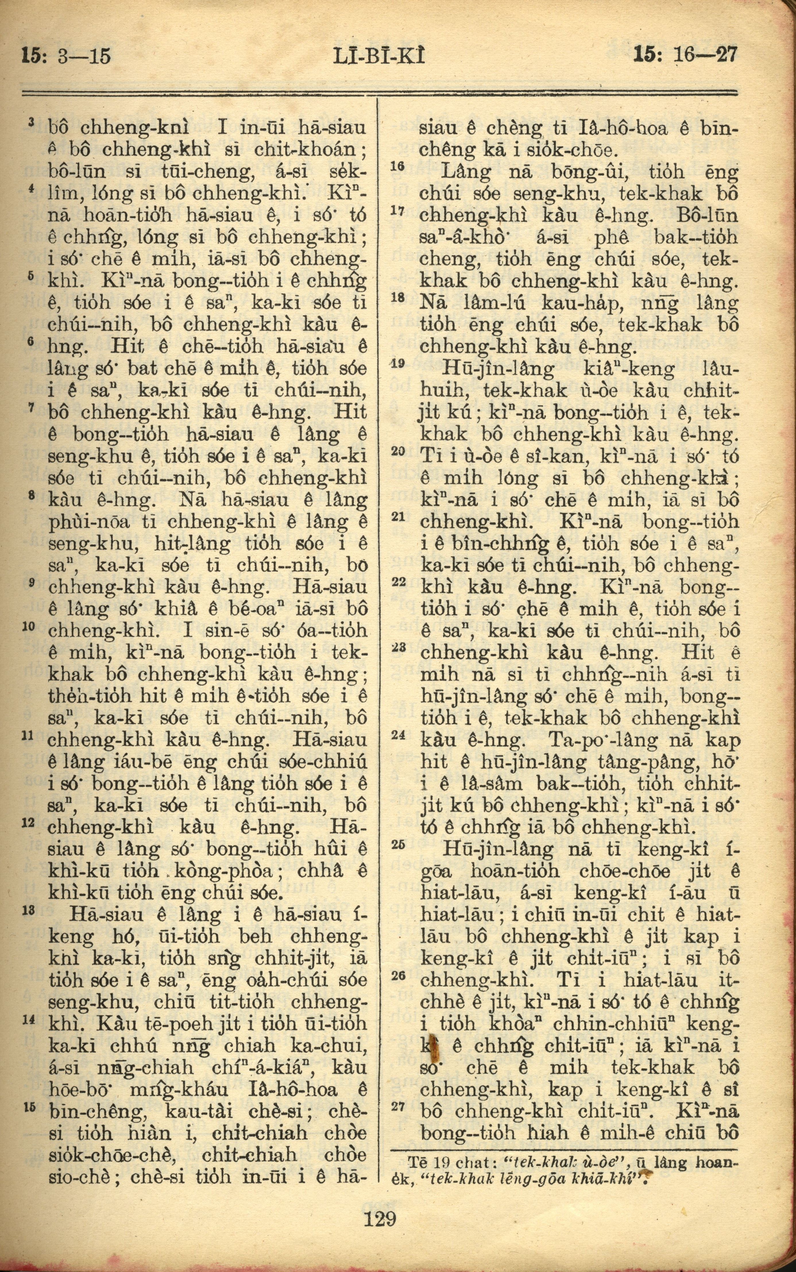 1957年巴克禮全羅台語聖經串珠版 利未記 15 章 3 節到 15 章 27 節