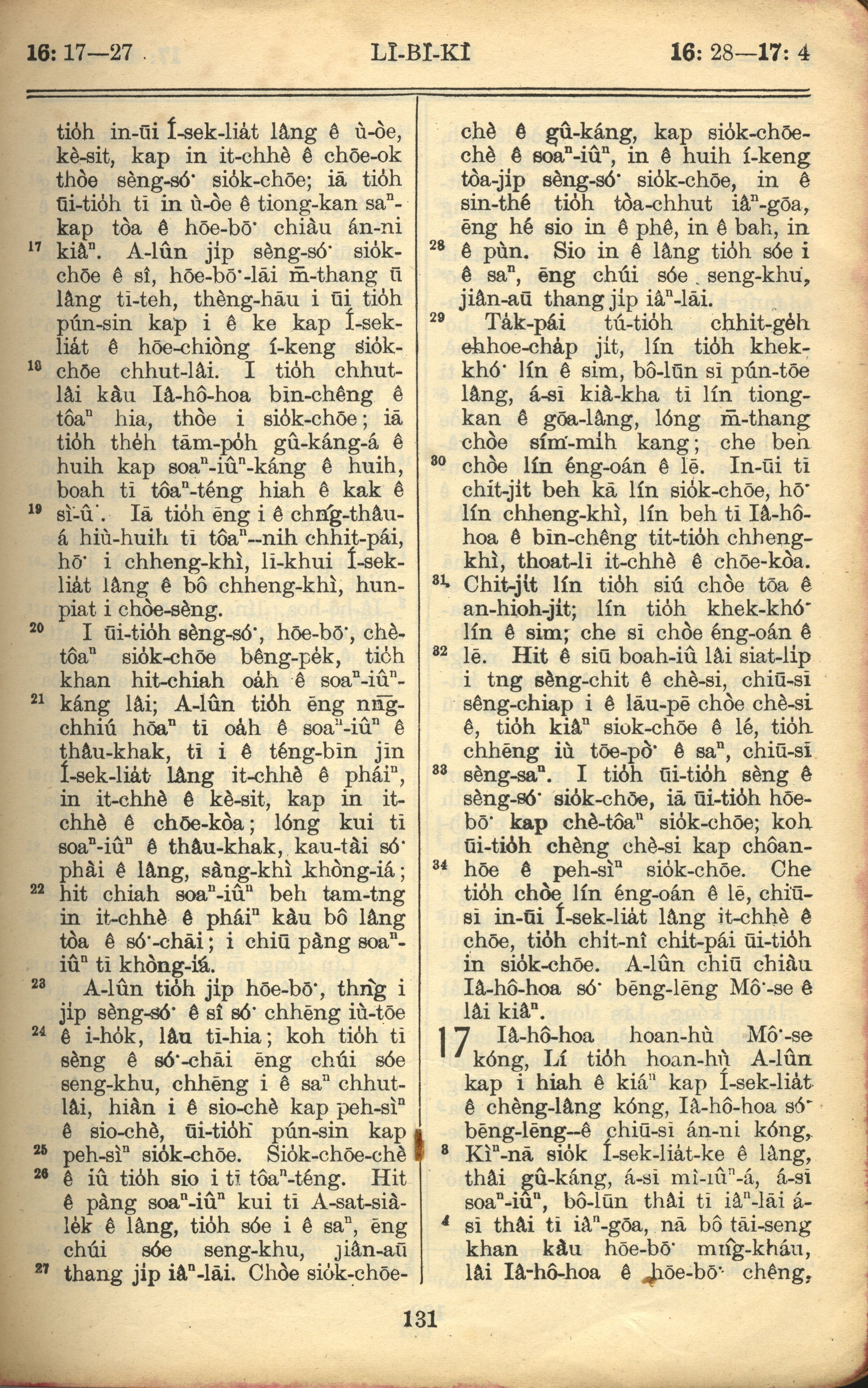 1957年巴克禮全羅台語聖經串珠版 利未記 16 章 17 節到 17 章 4 節