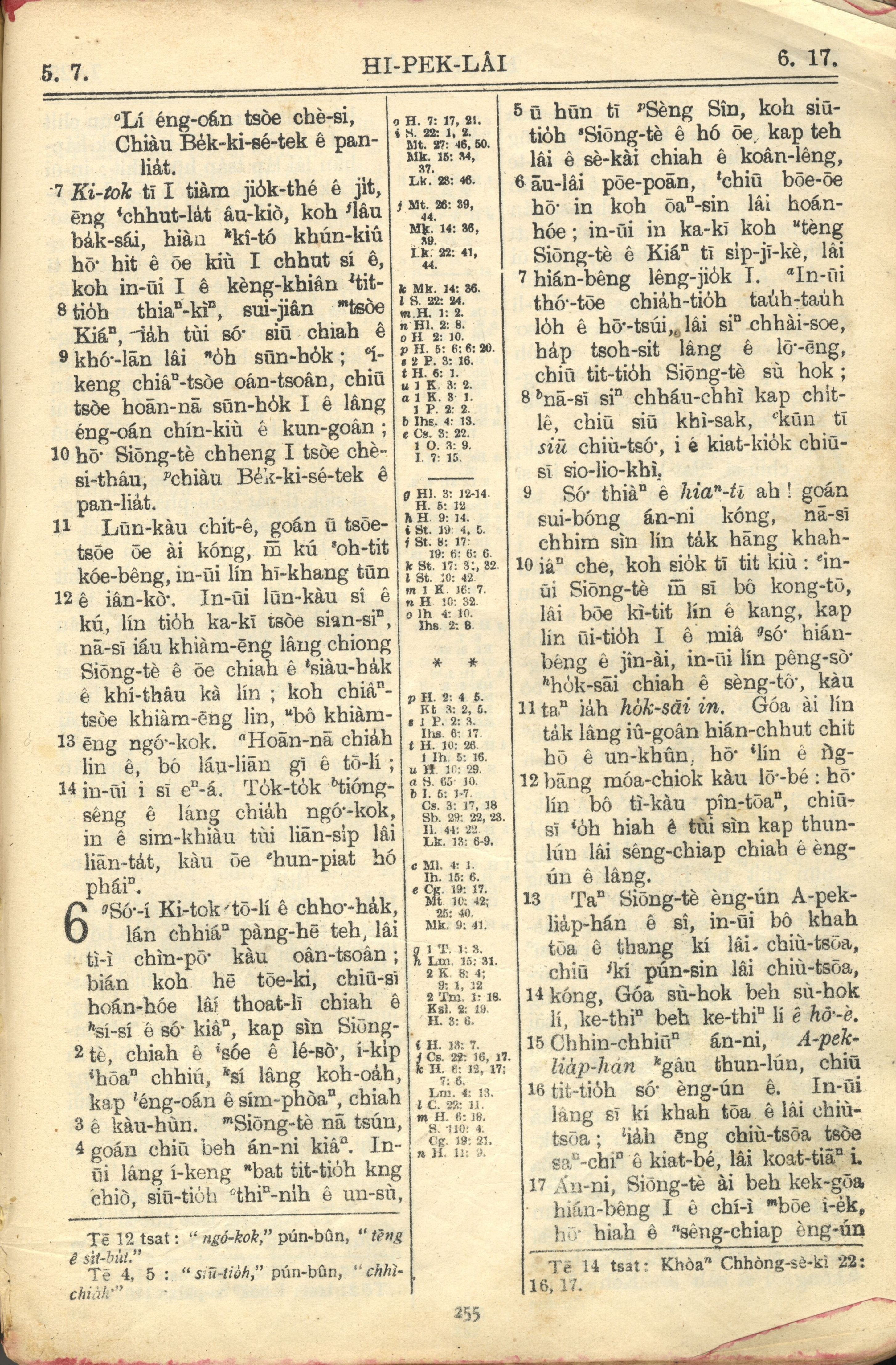 1957年巴克禮全羅台語聖經串珠版 希伯來書 5 章 7 節到 6 章 17 節