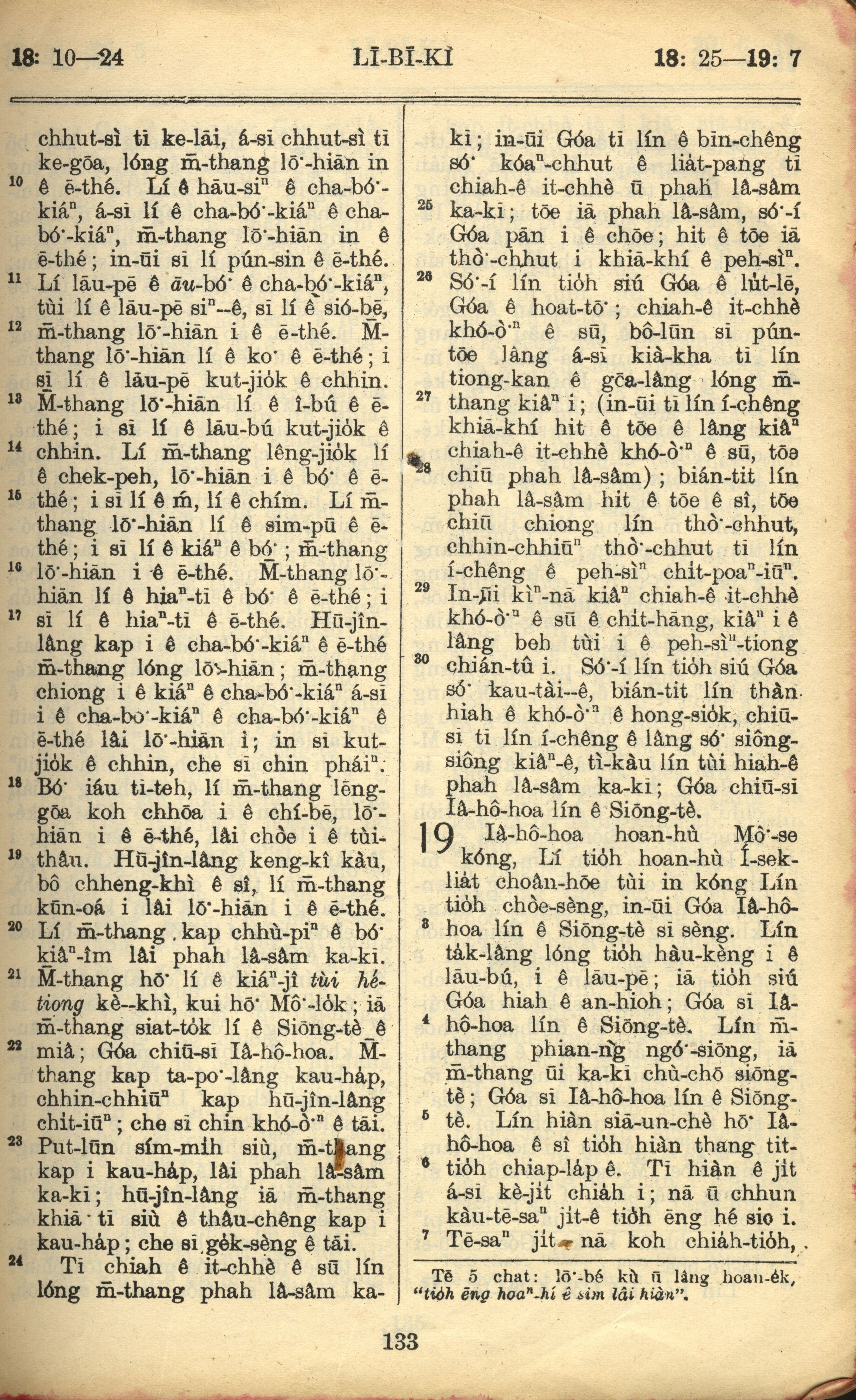1957年巴克禮全羅台語聖經串珠版 利未記 18 章 10 節到 19 章 7 節