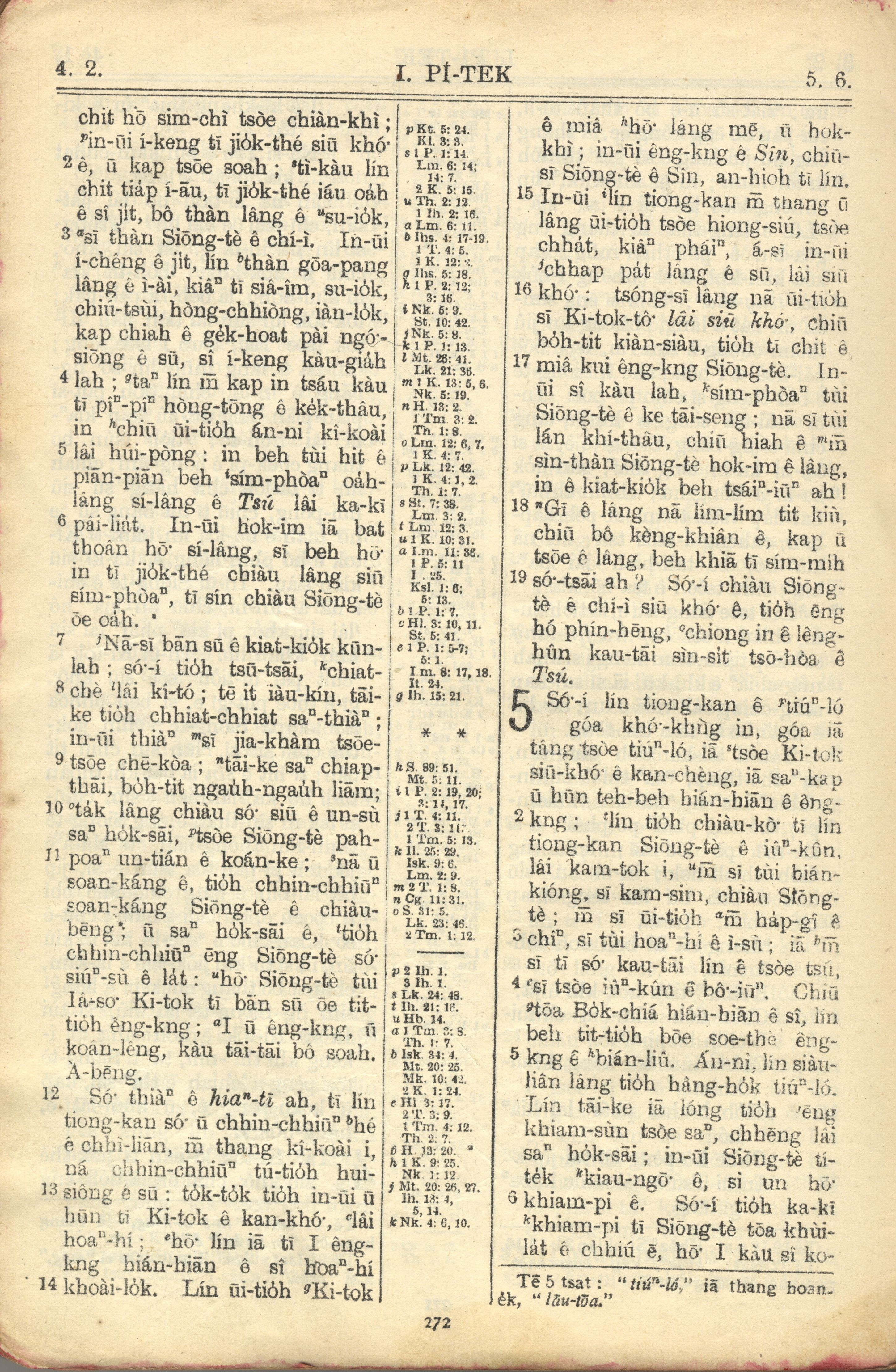 1957年巴克禮全羅台語聖經串珠版 彼得前書 4 章 2 節到 5 章 6 節