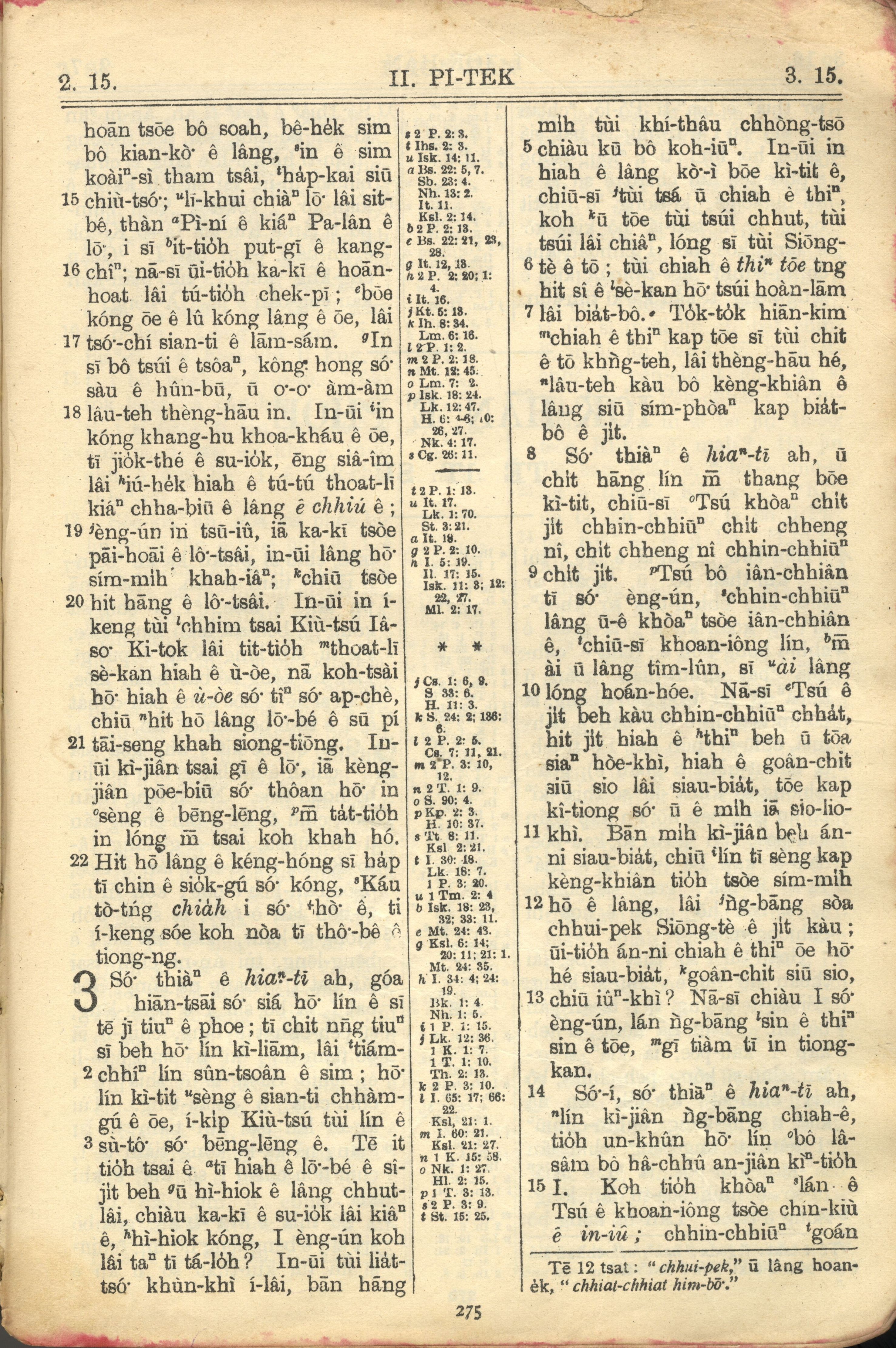 1957年巴克禮全羅台語聖經串珠版 彼得後書 2 章 15 節到 3 章 15 節