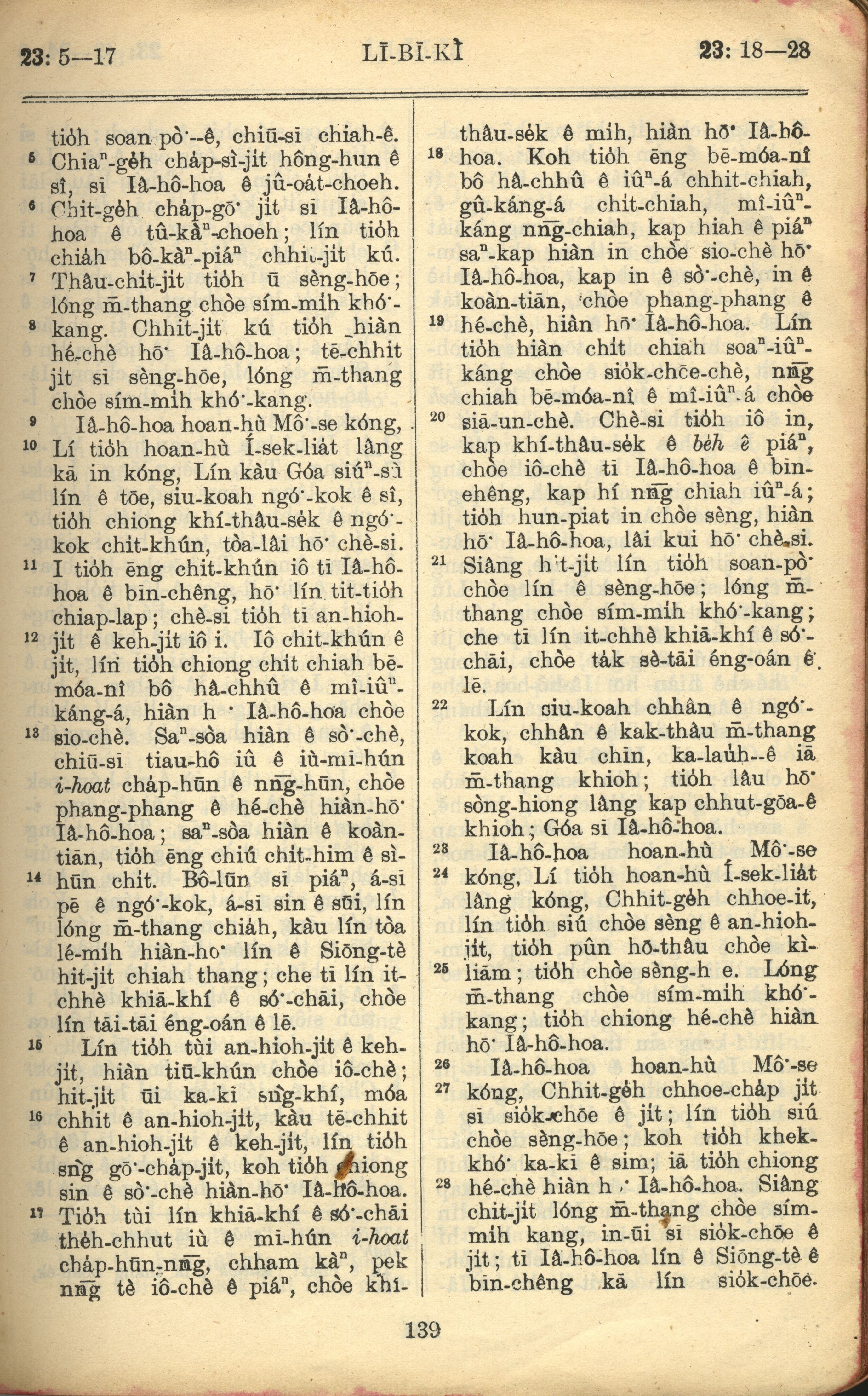 1957年巴克禮全羅台語聖經串珠版 利未記 23 章 5 節到 23 章 28 節
