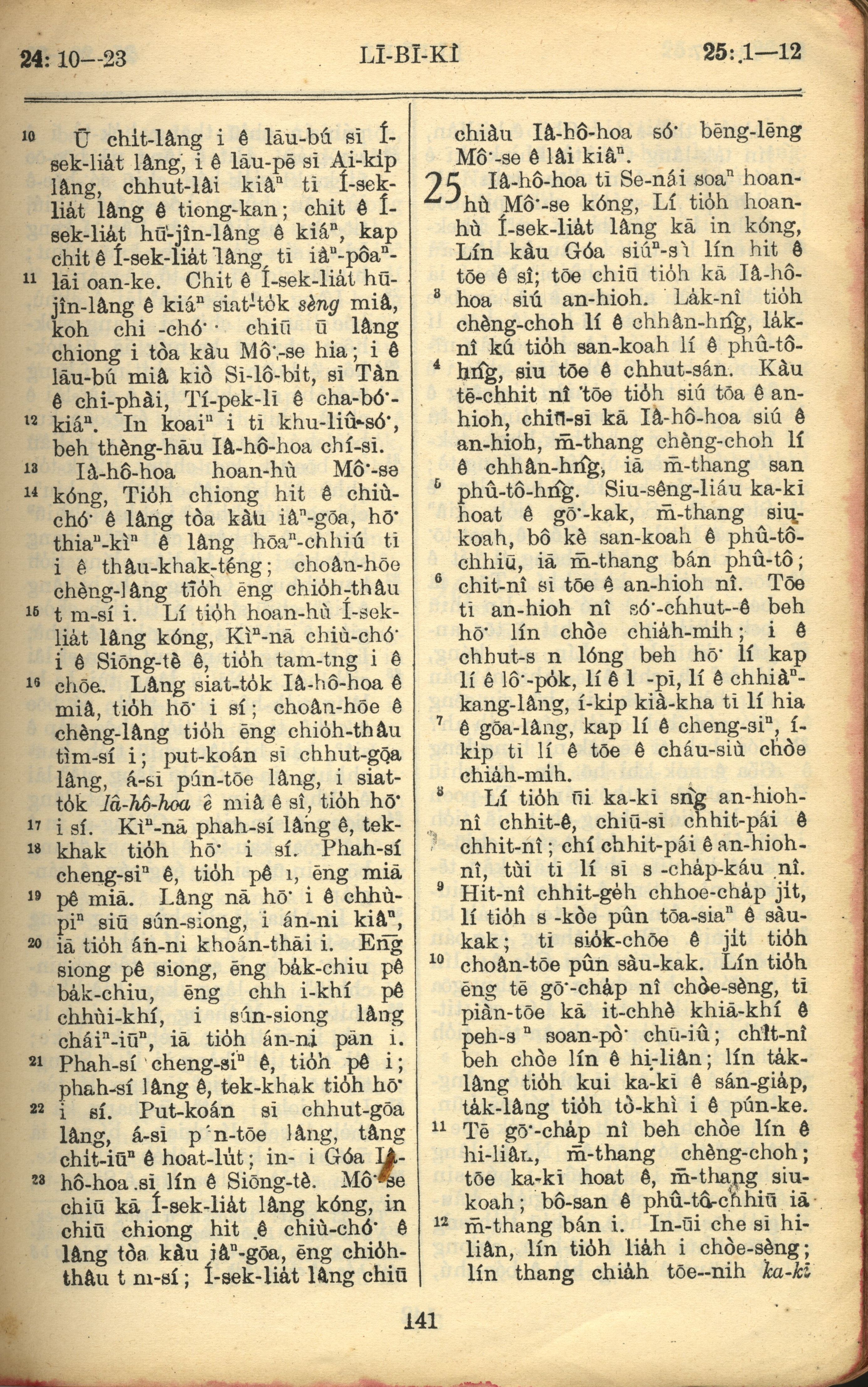 1957年巴克禮全羅台語聖經串珠版 利未記 24 章 10 節到 25 章 12 節
