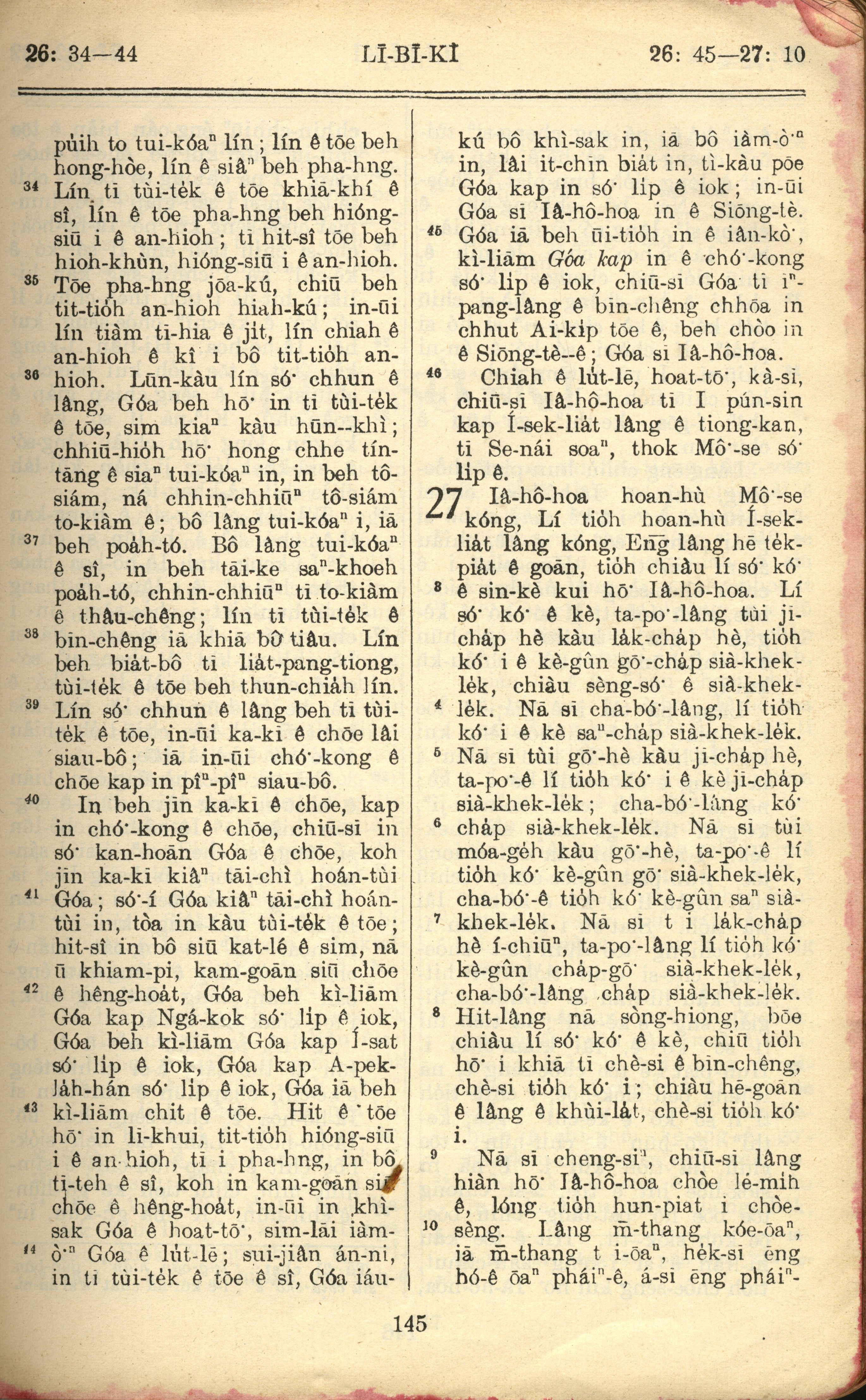 1957年巴克禮全羅台語聖經串珠版 利未記 26 章 34 節到 27 章 10 節