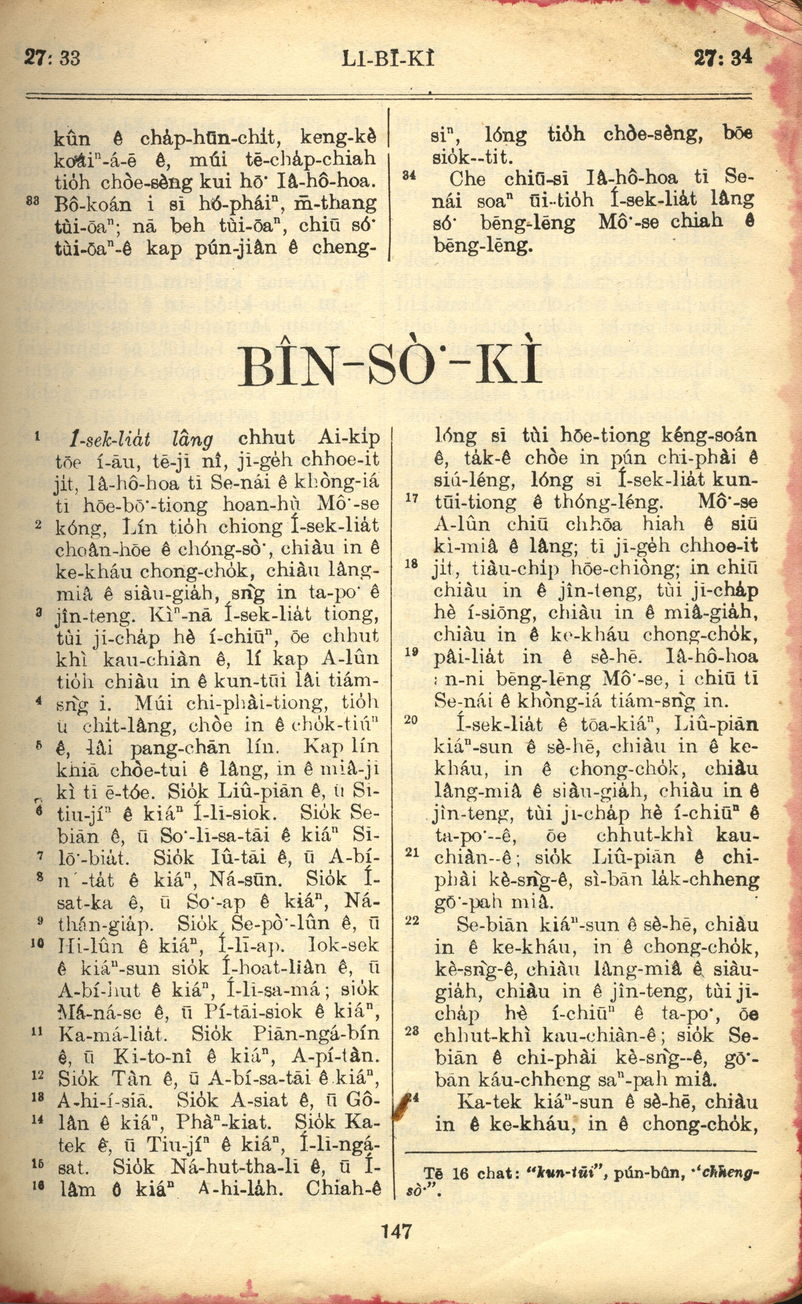 1957年巴克禮全羅台語聖經串珠版 民數記 1 章 1 節到 1 章 24 節