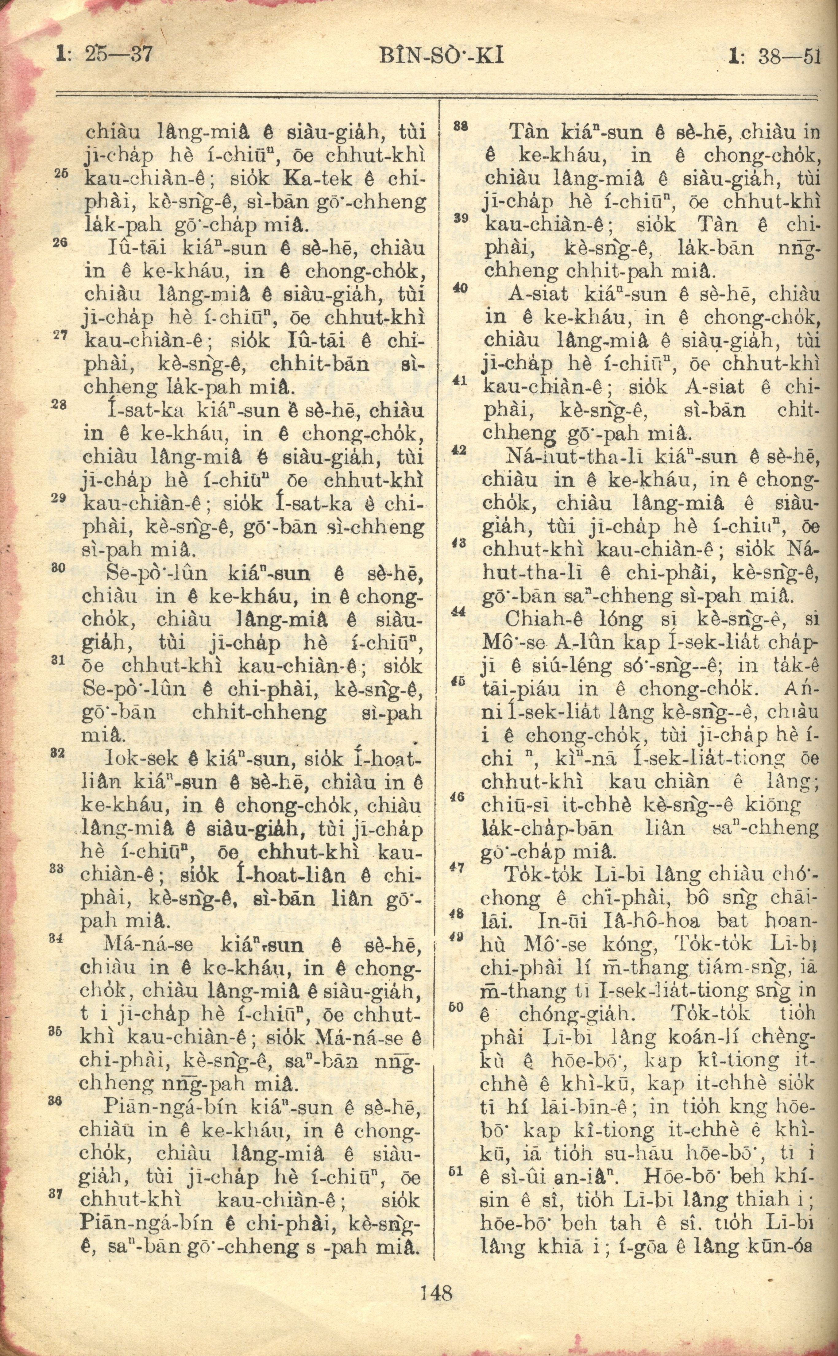 1957年巴克禮全羅台語聖經串珠版 民數記 1 章 25 節到 1 章 51 節