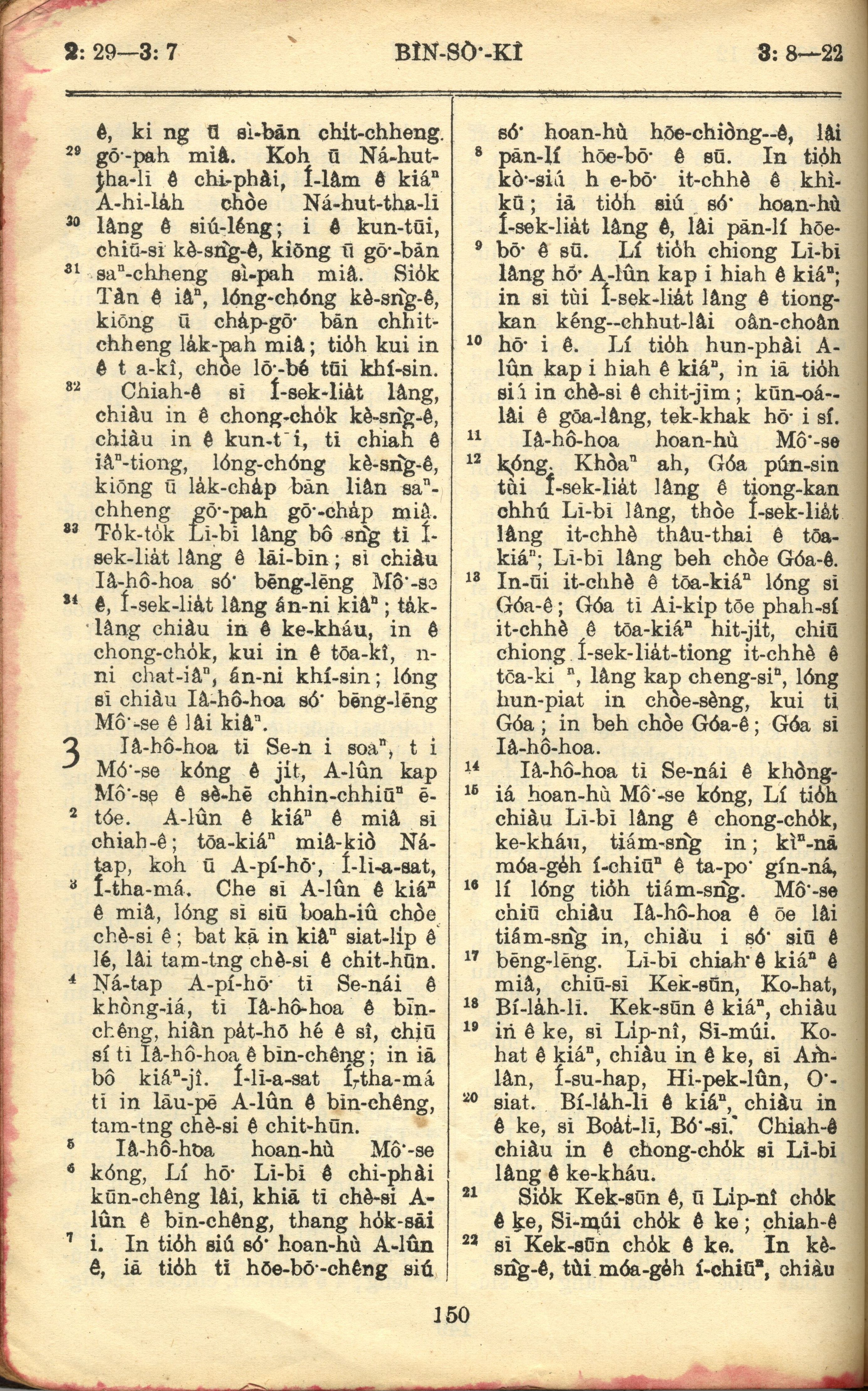 1957年巴克禮全羅台語聖經串珠版 民數記 2 章 29 節到 3 章 22 節