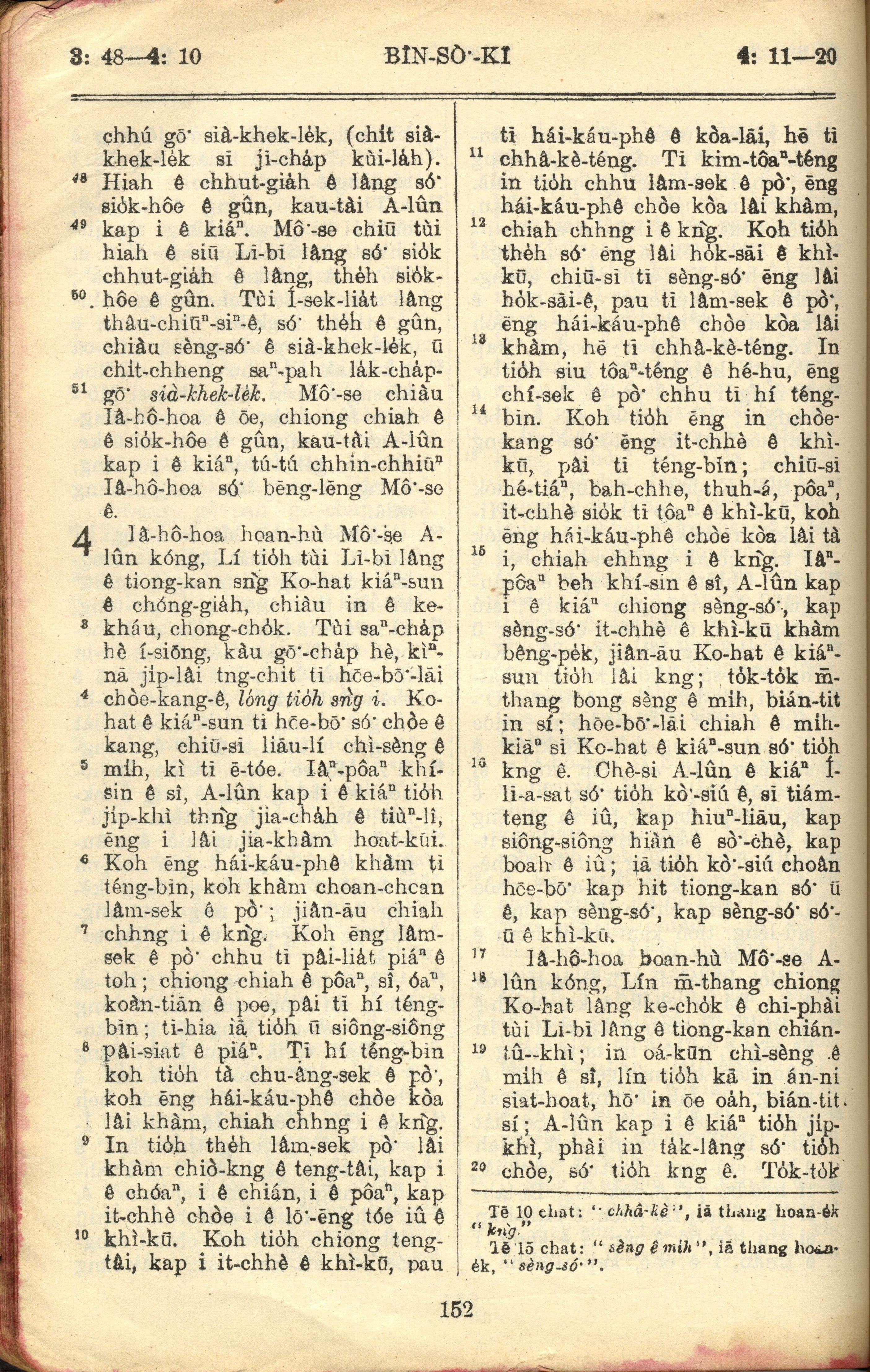 1957年巴克禮全羅台語聖經串珠版 民數記 3 章 48 節到 4 章 20 節