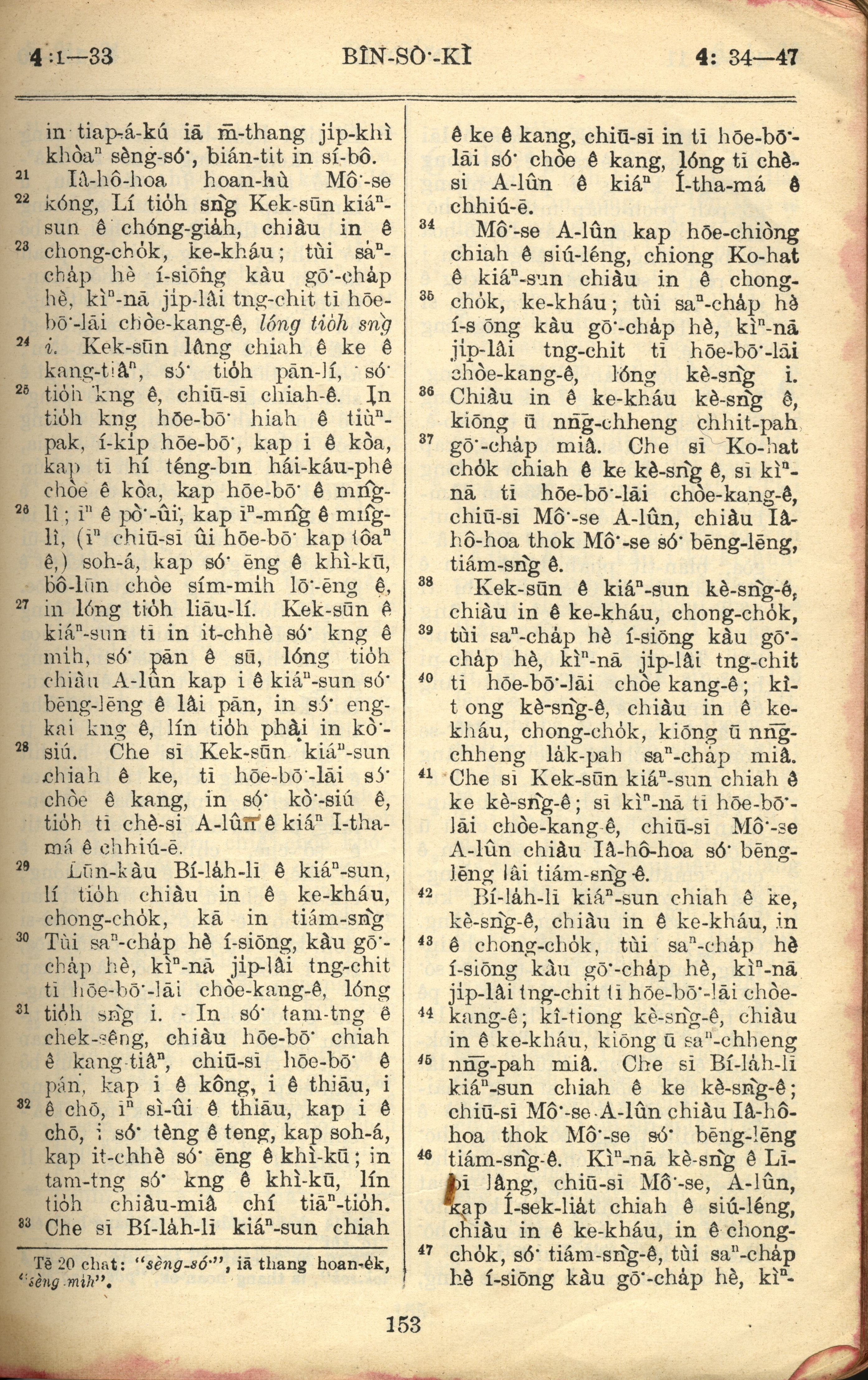 1957年巴克禮全羅台語聖經串珠版 民數記 4 章 21 節到 4 章 47 節