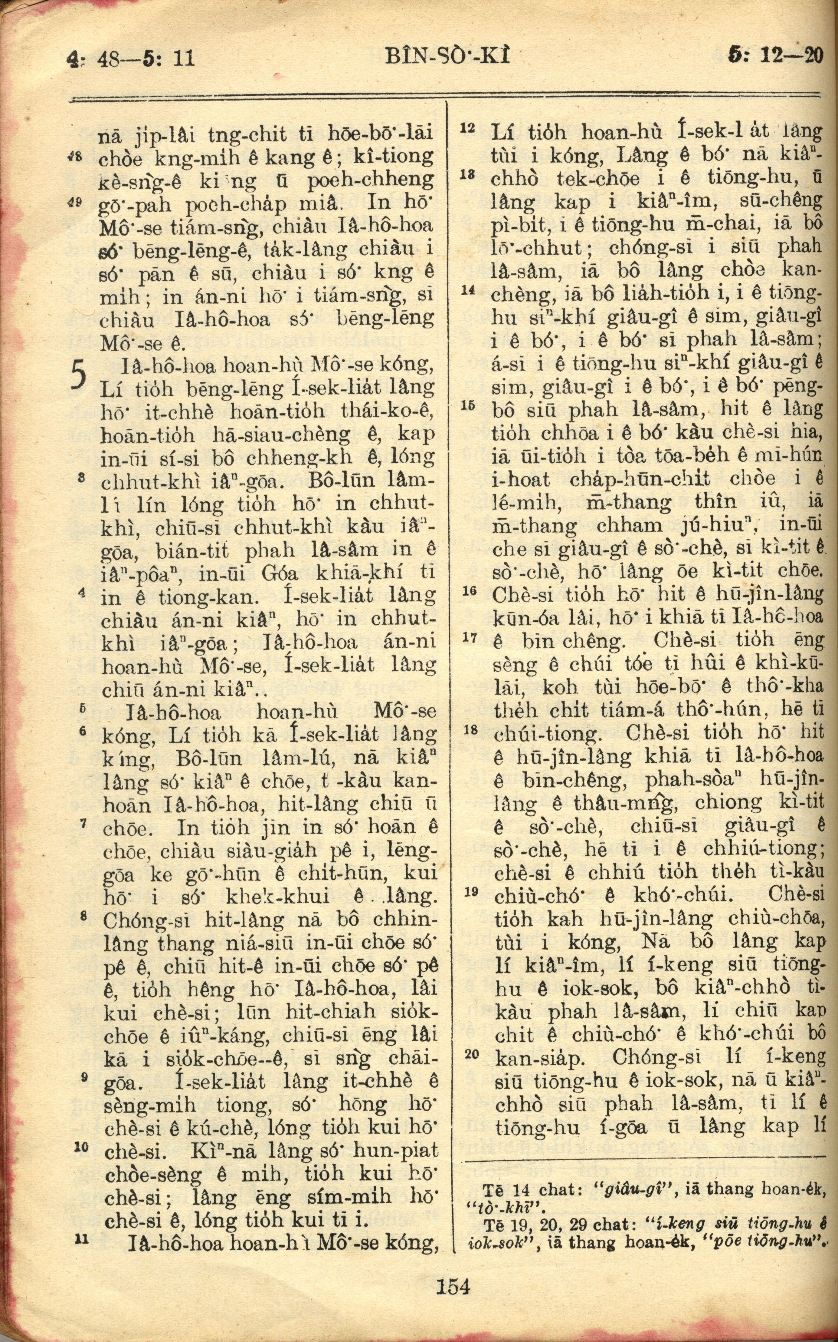 1957年巴克禮全羅台語聖經串珠版 民數記 4 章 48 節到 5 章 20 節