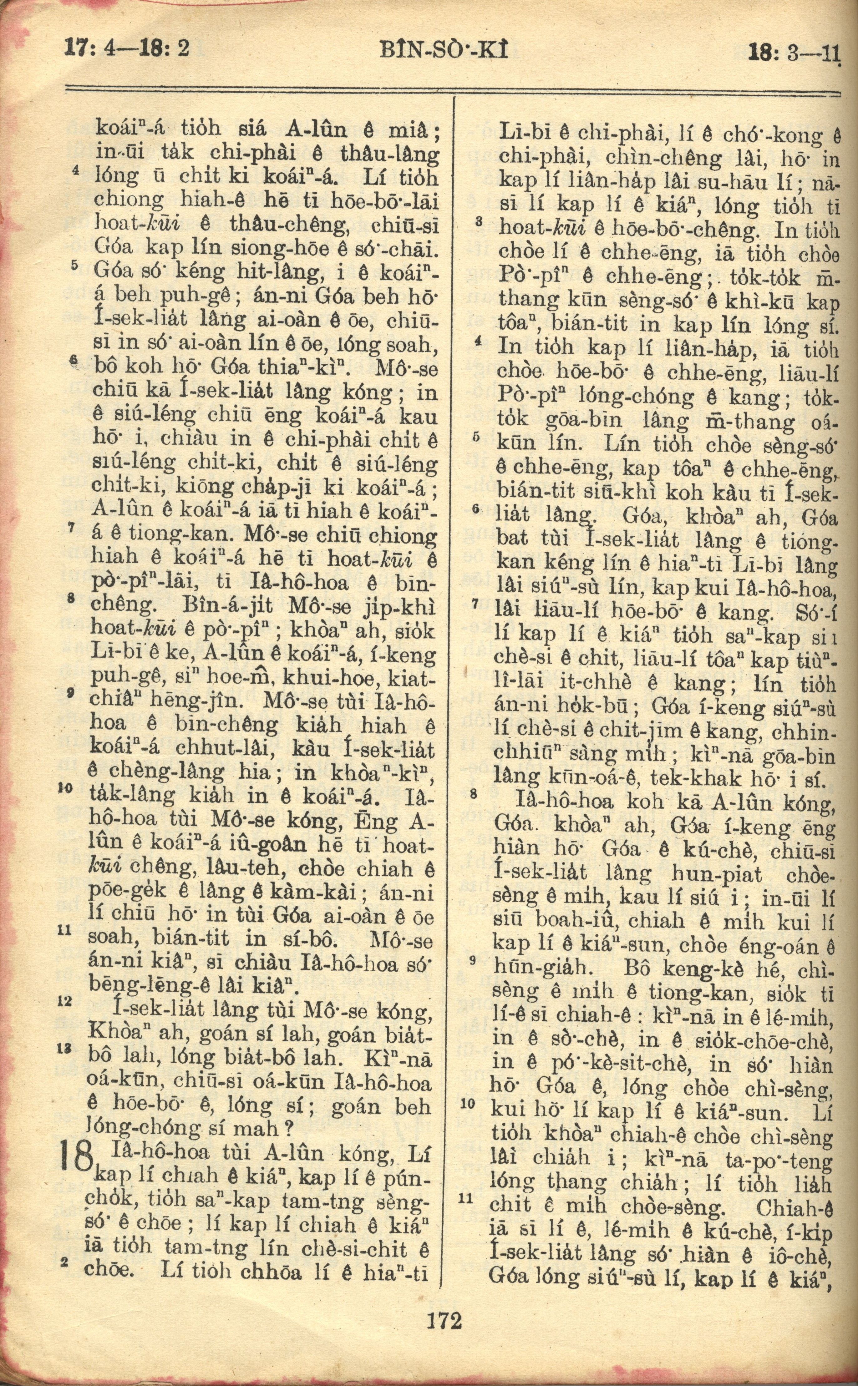1957年巴克禮全羅台語聖經串珠版 民數記 17 章 4 節到 18 章 11 節