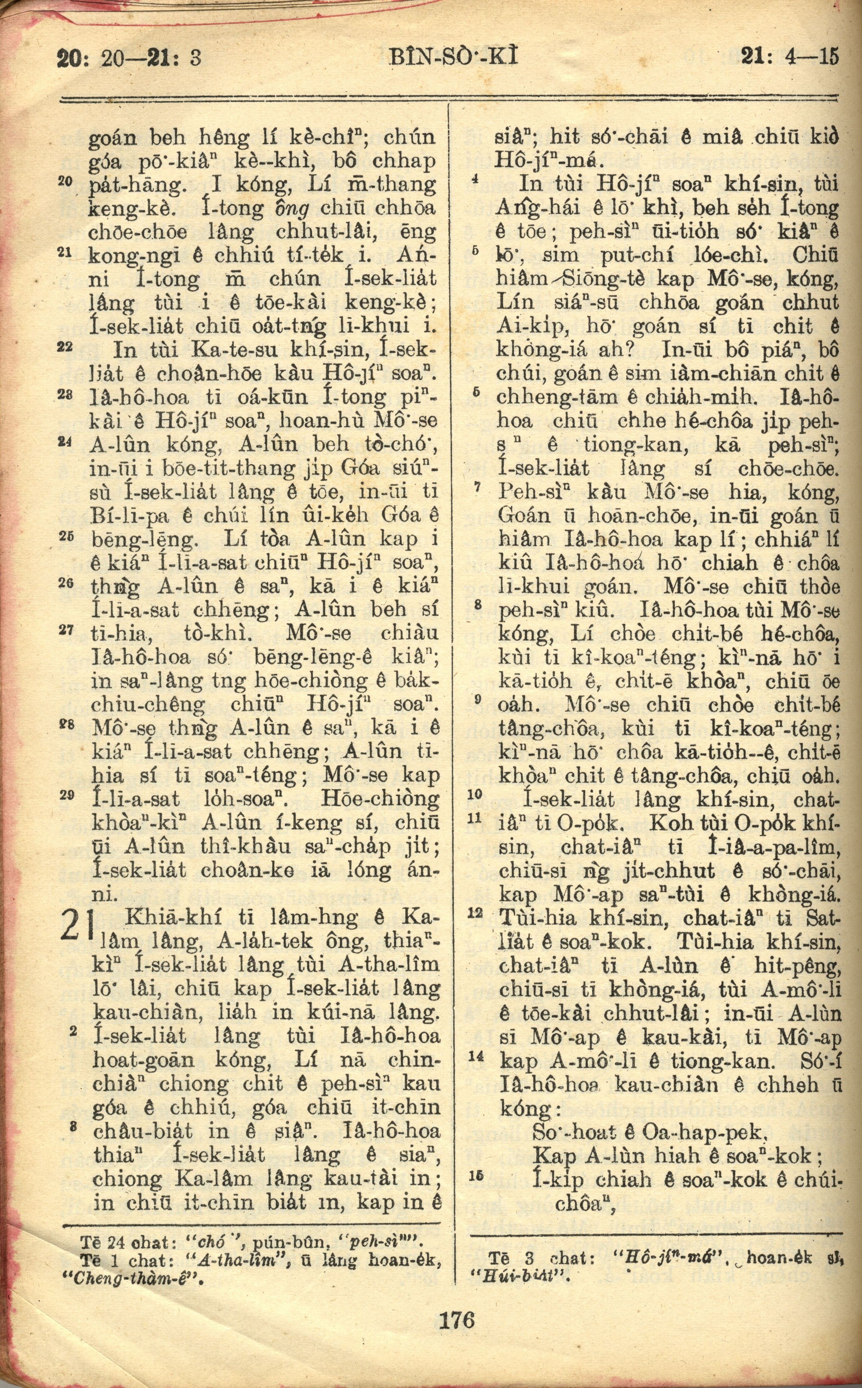 1957年巴克禮全羅台語聖經串珠版 民數記 20 章 20 節到 21 章 15 節