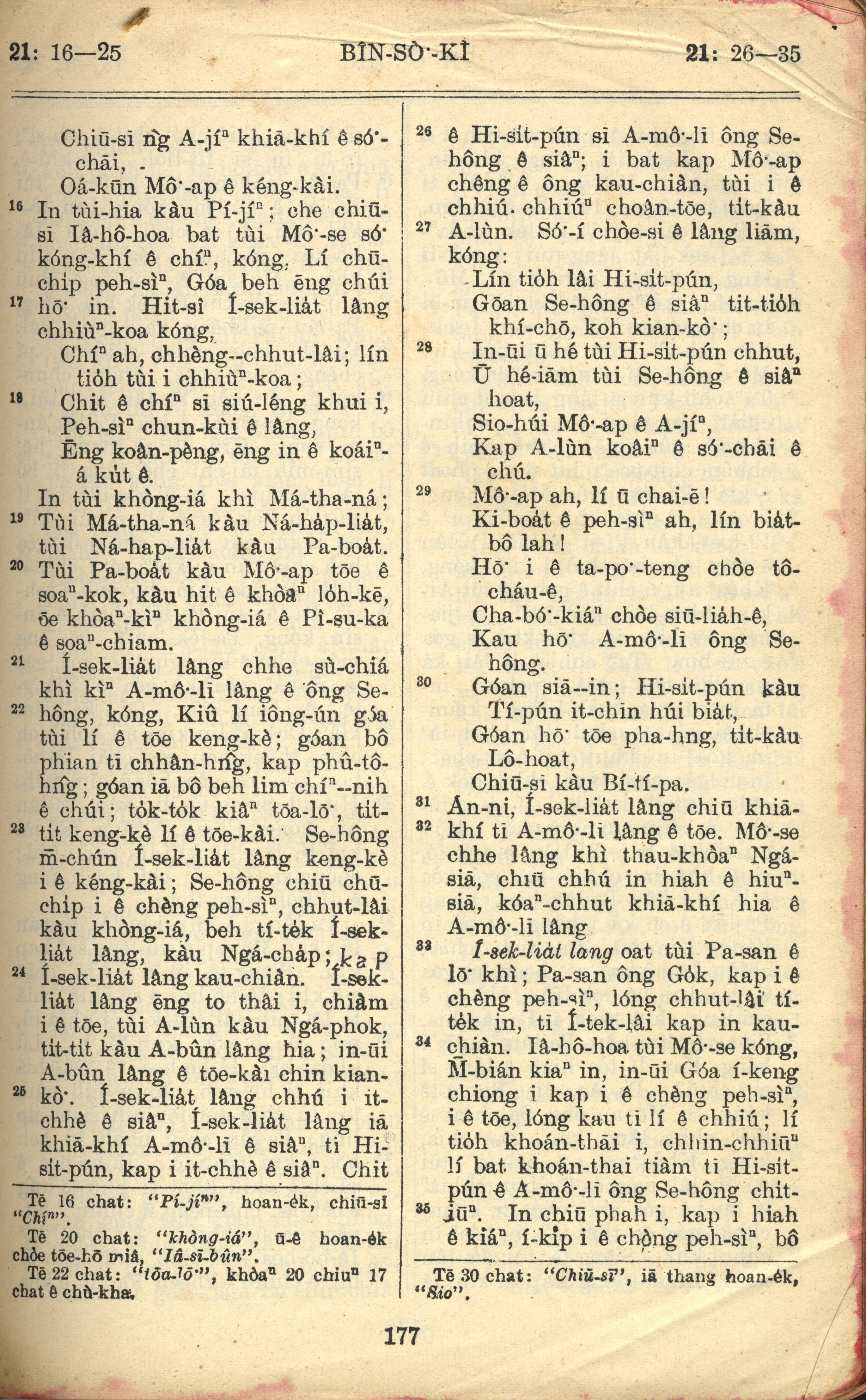 1957年巴克禮全羅台語聖經串珠版 民數記 21 章 16 節到 21 章 35 節