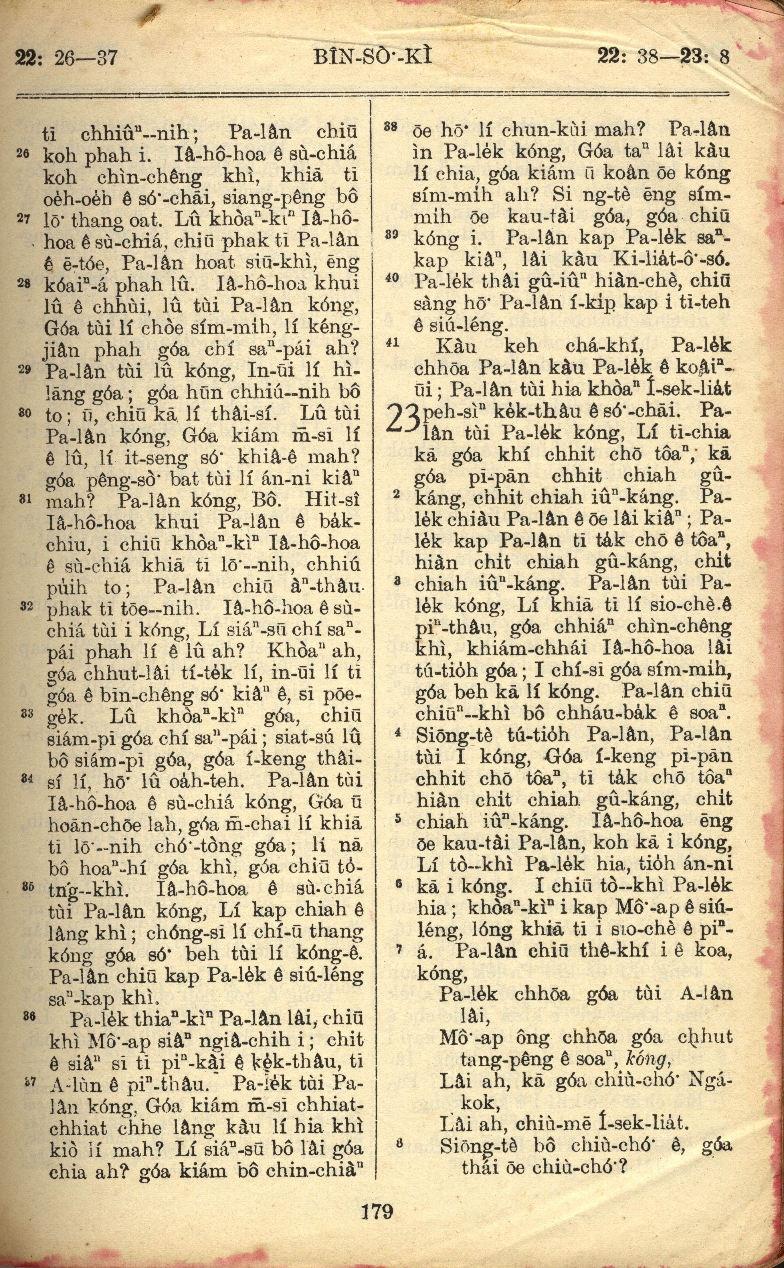 1957年巴克禮全羅台語聖經串珠版 民數記 22 章 26 節到 23 章 8 節