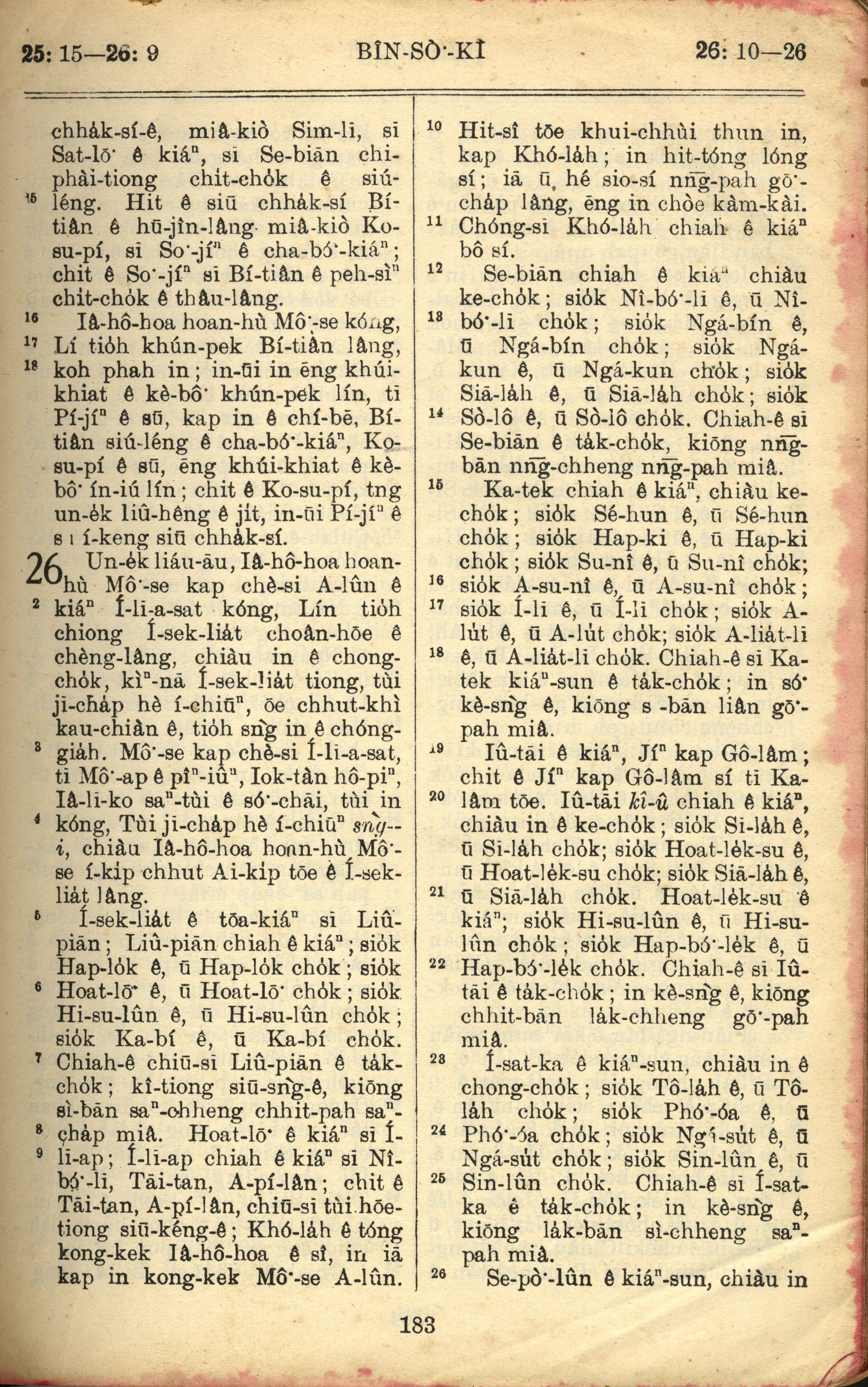 1957年巴克禮全羅台語聖經串珠版 民數記 25 章 15 節到 26 章 26 節