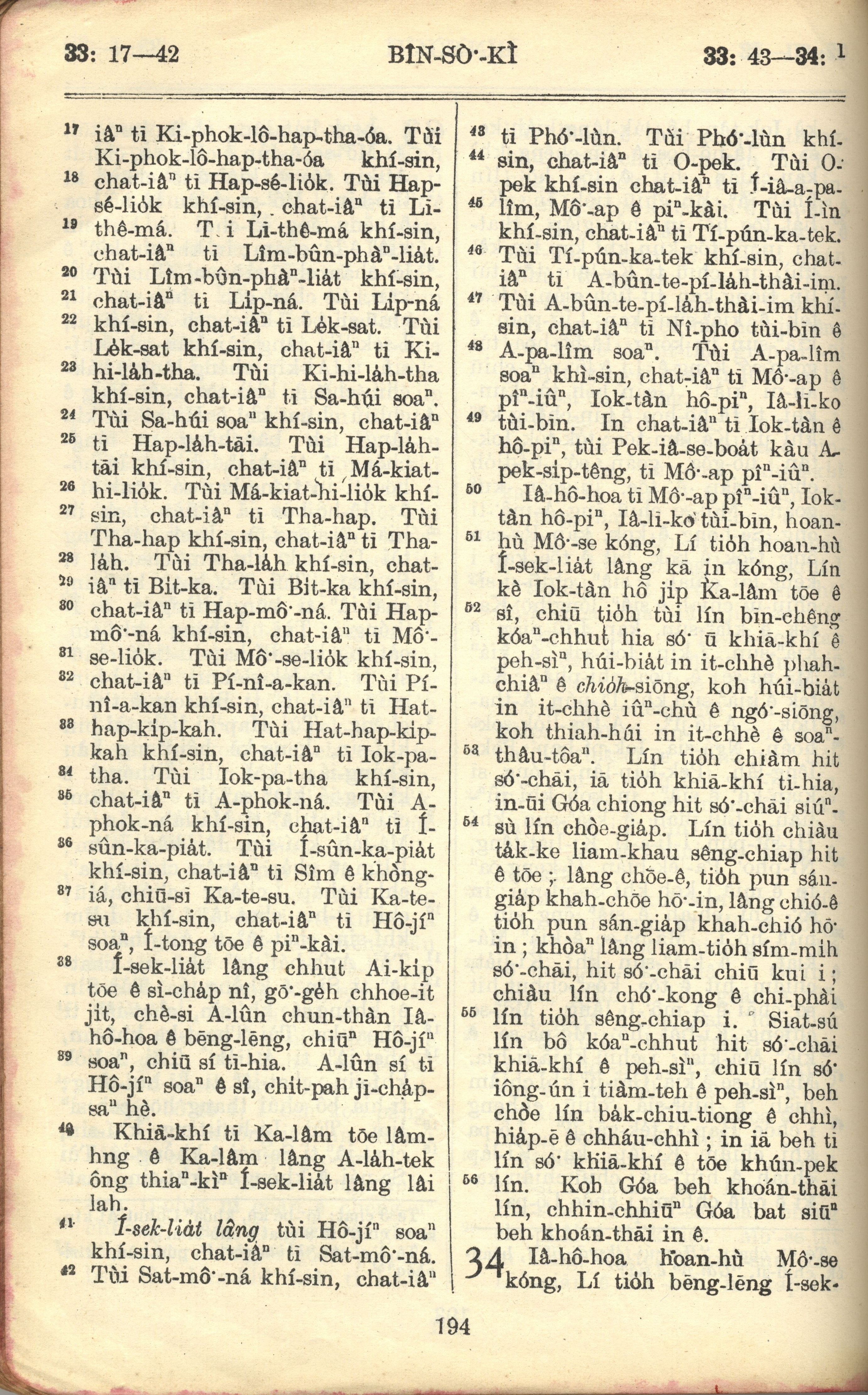 1957年巴克禮全羅台語聖經串珠版 民數記 33 章 17 節到 34 章 1 節
