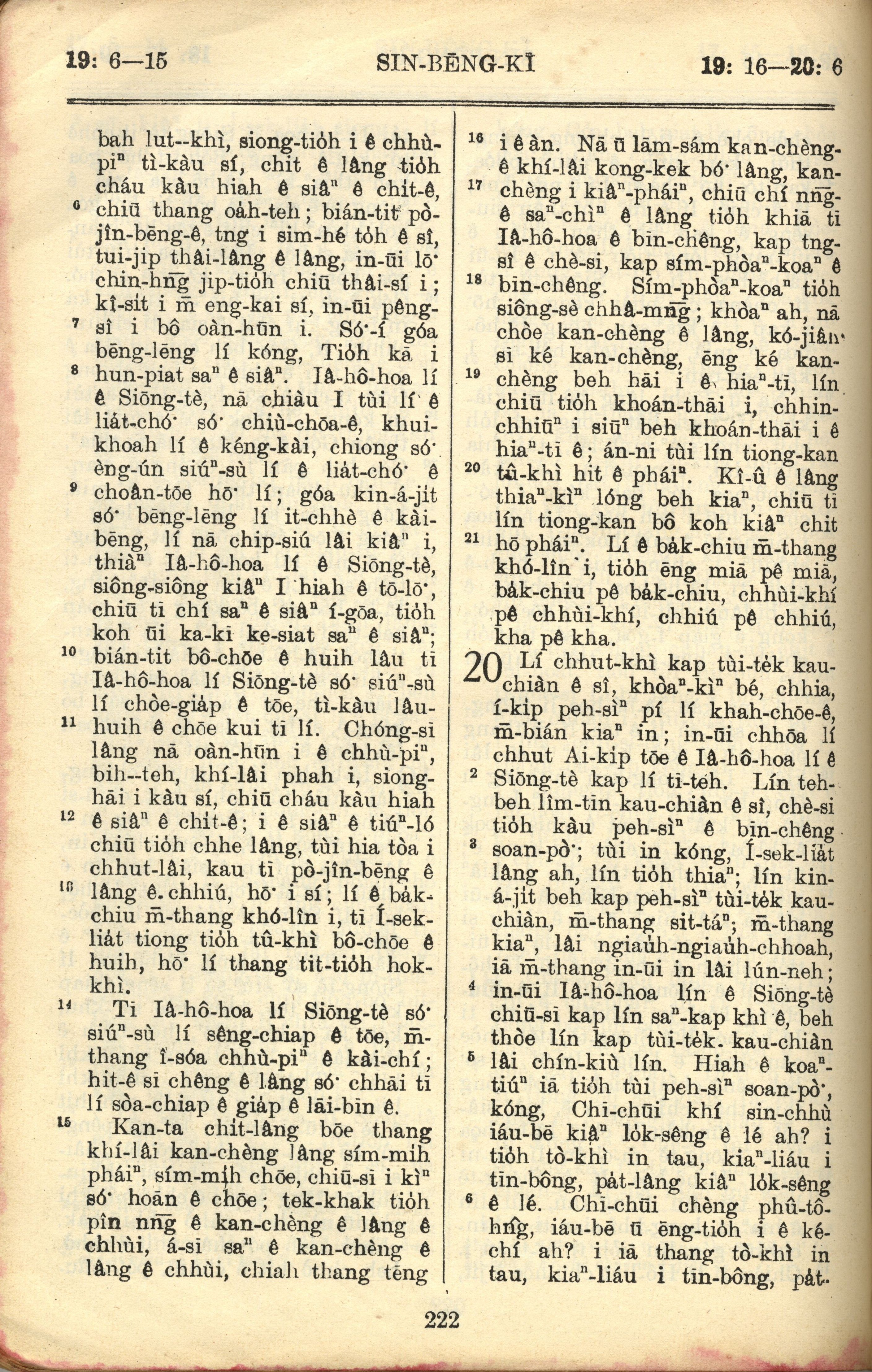 1957年巴克禮全羅台語聖經串珠版 申命記 19 章 6 節到 20 章 6 節