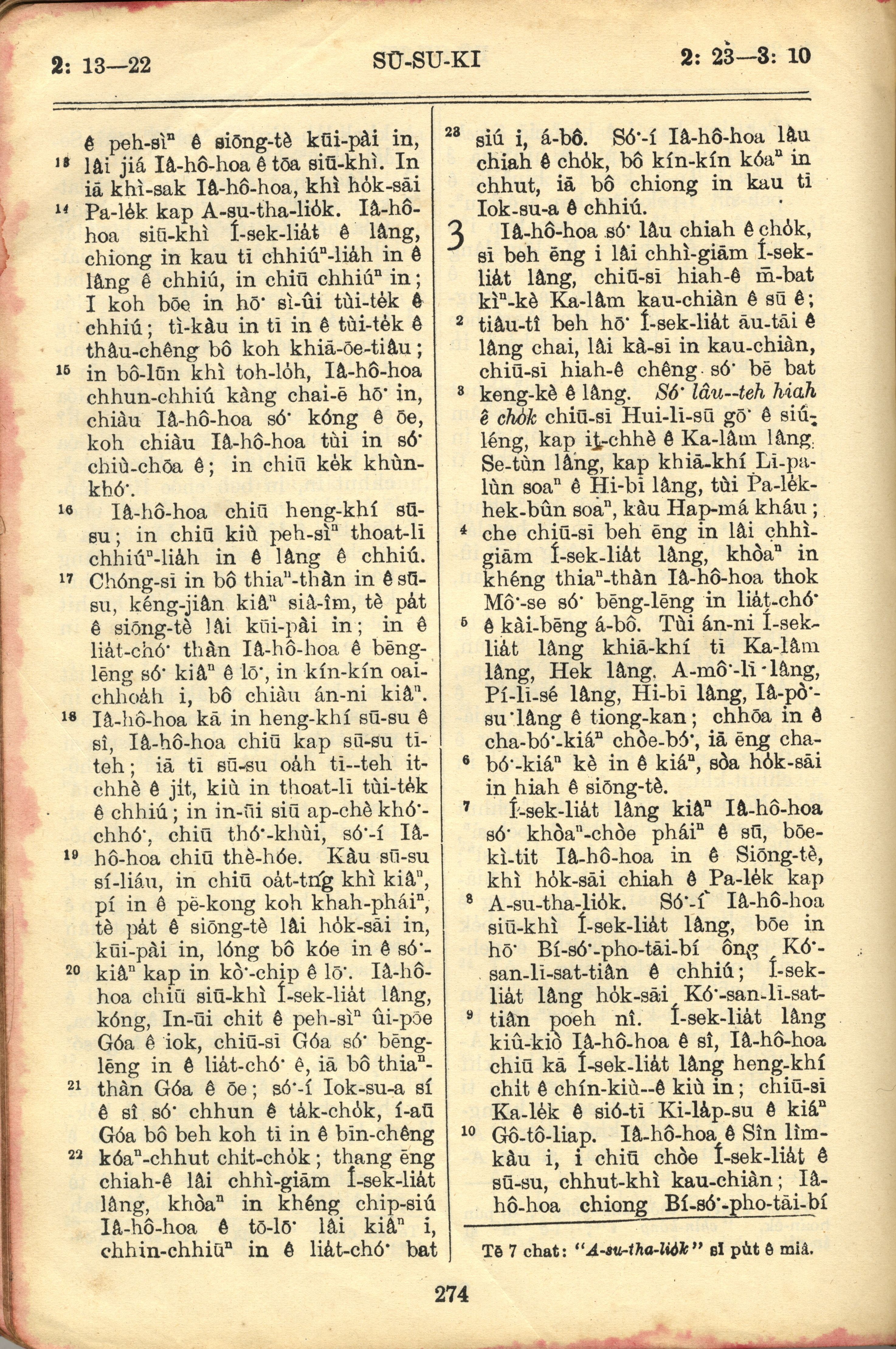 1957年巴克禮全羅台語聖經串珠版 士師記 2 章 13 節到 3 章 10 節