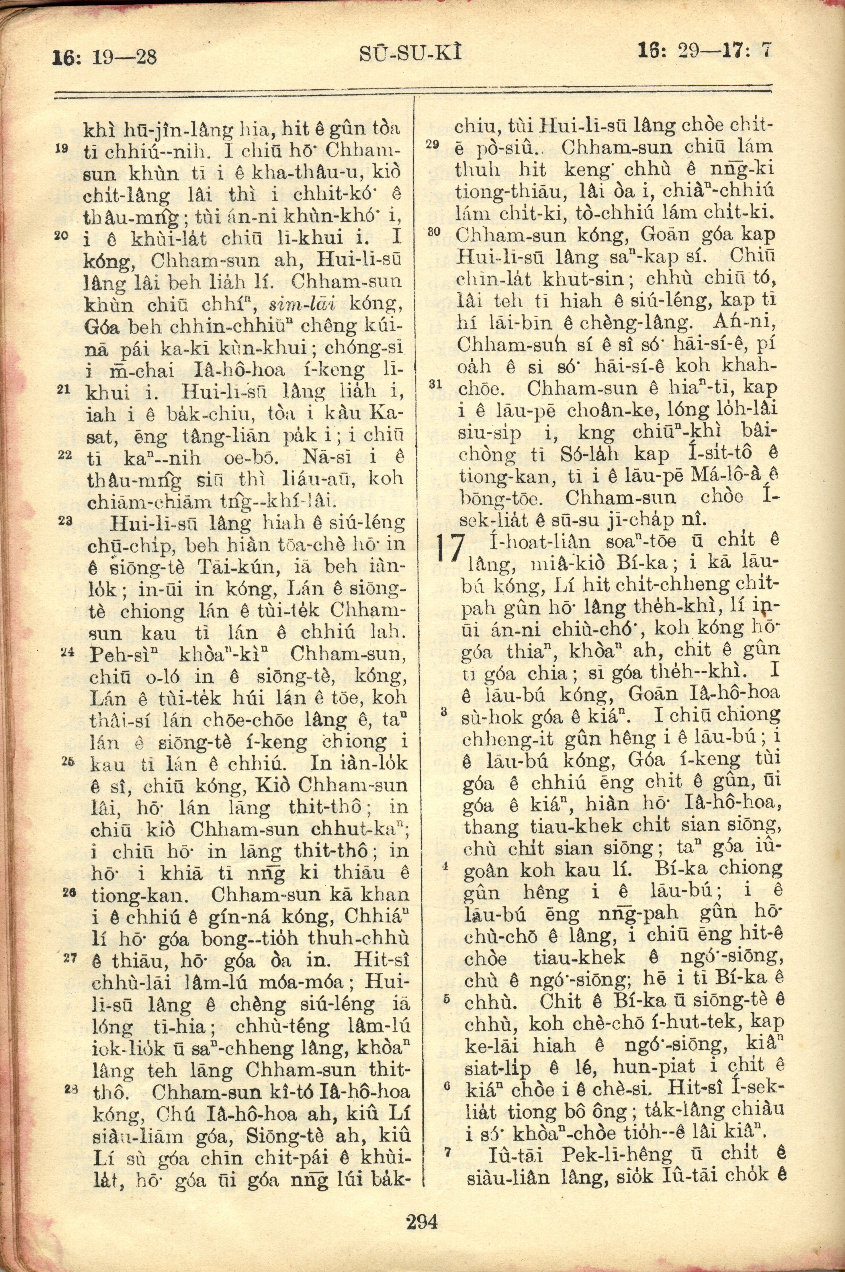 1957年巴克禮全羅台語聖經串珠版 士師記 16 章 19 節到 17 章 7 節