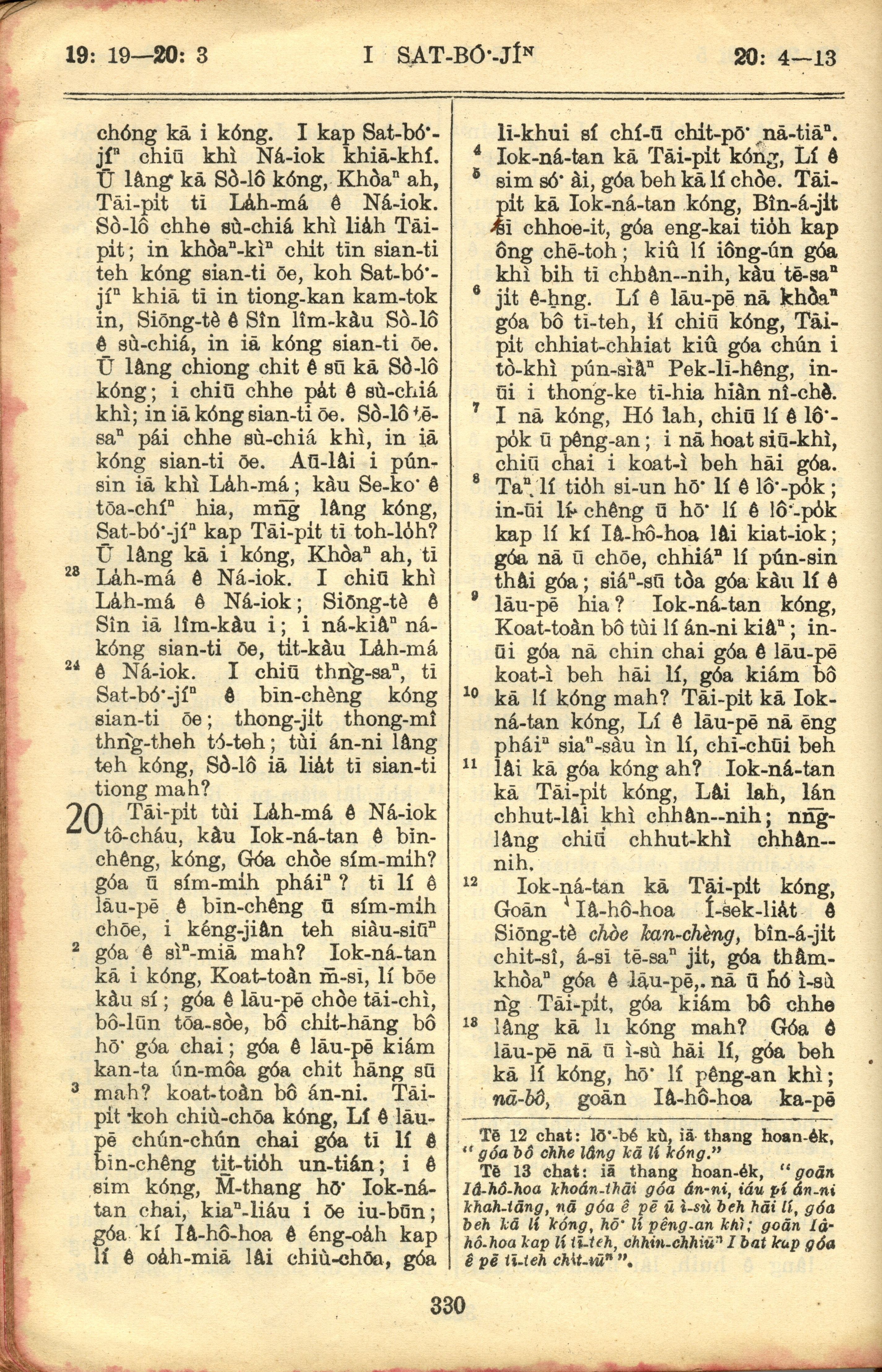 1957年巴克禮全羅台語聖經串珠版 撒母耳記上 19 章 19 節到 20 章 13 節