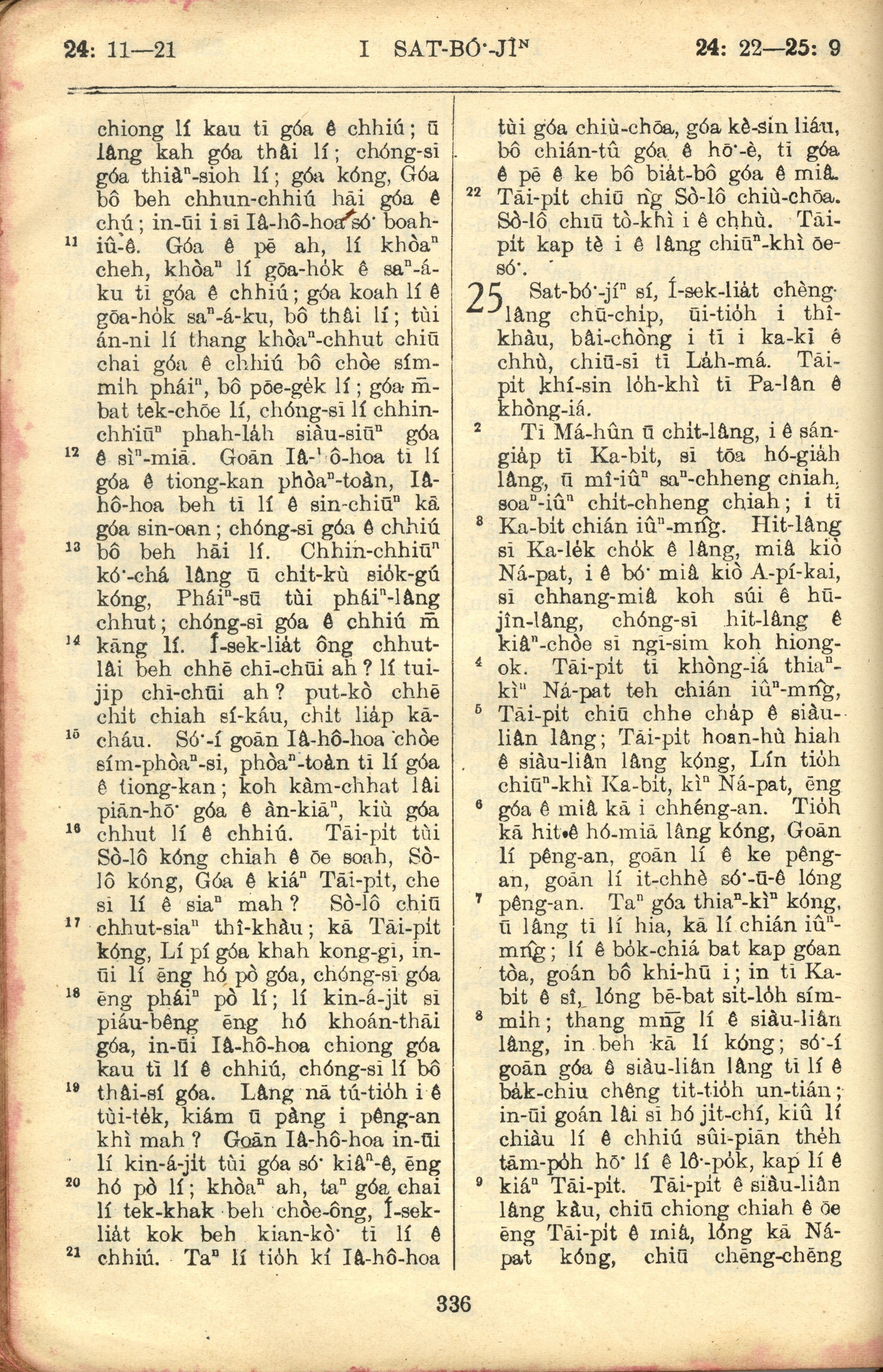 1957年巴克禮全羅台語聖經串珠版 撒母耳記上 24 章 11 節到 25 章 9 節