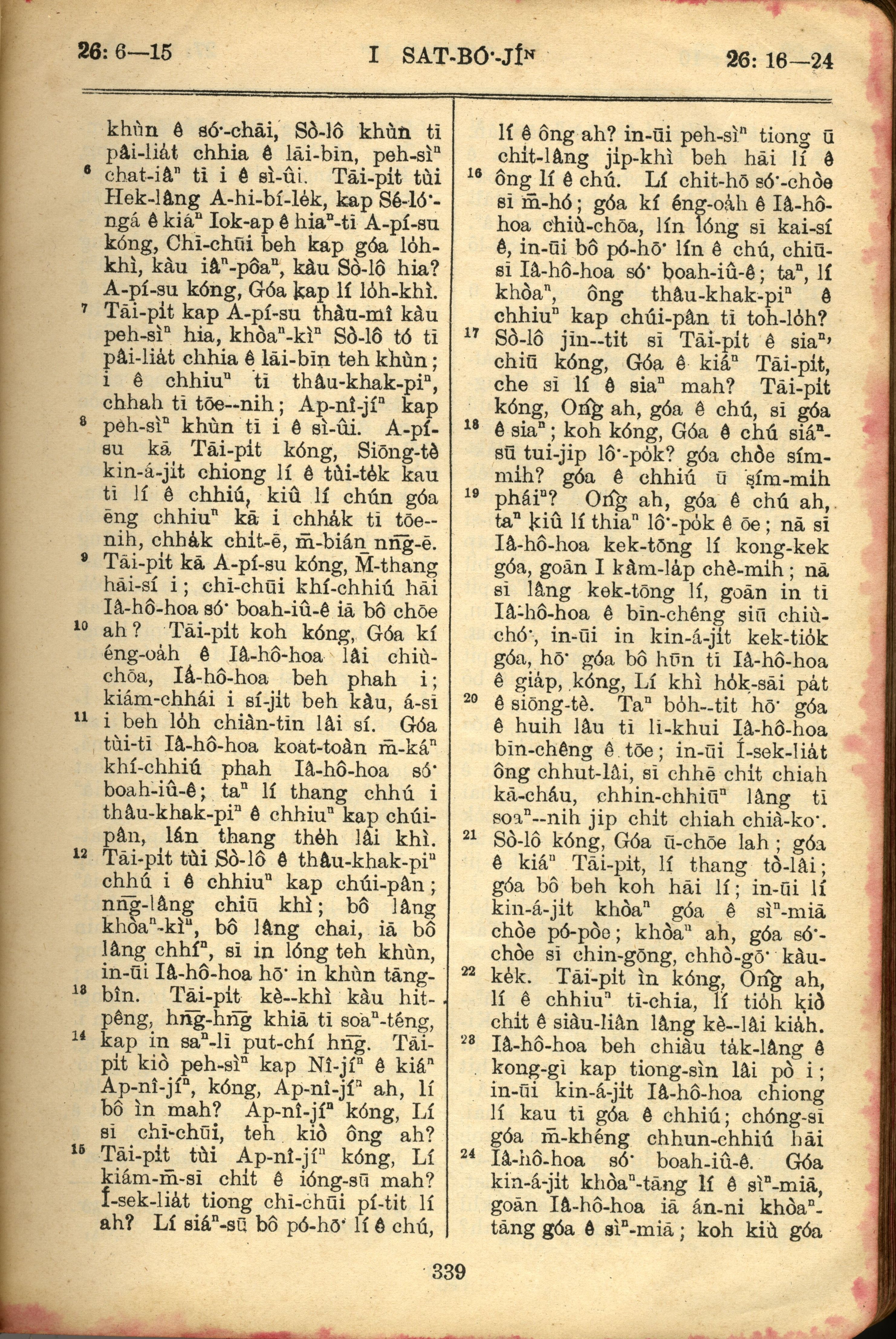 1957年巴克禮全羅台語聖經串珠版 撒母耳記上 26 章 6 節到 26 章 24 節