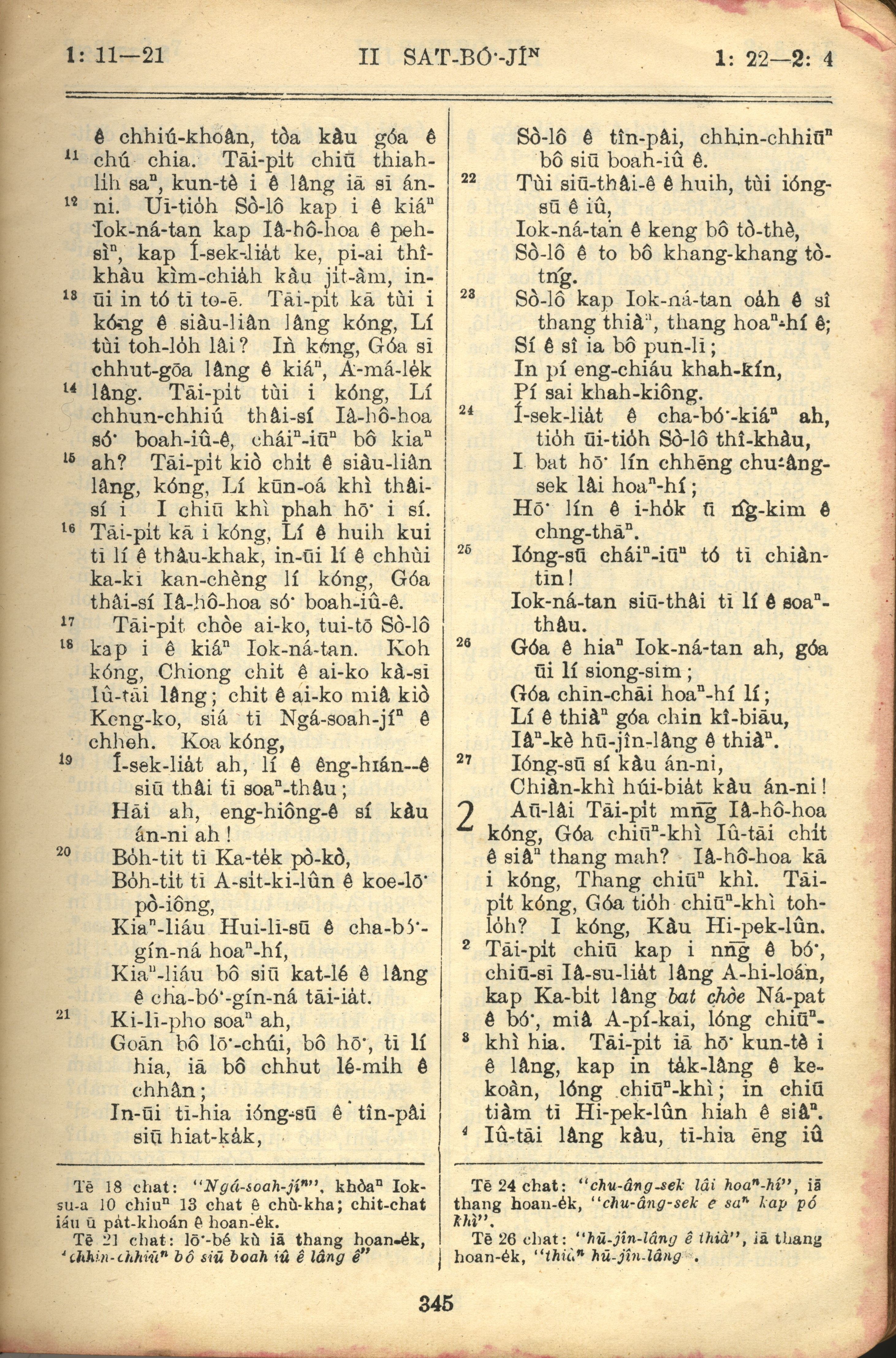 1957年巴克禮全羅台語聖經串珠版 撒母耳記下 1 章 11 節到 2 章 4 節