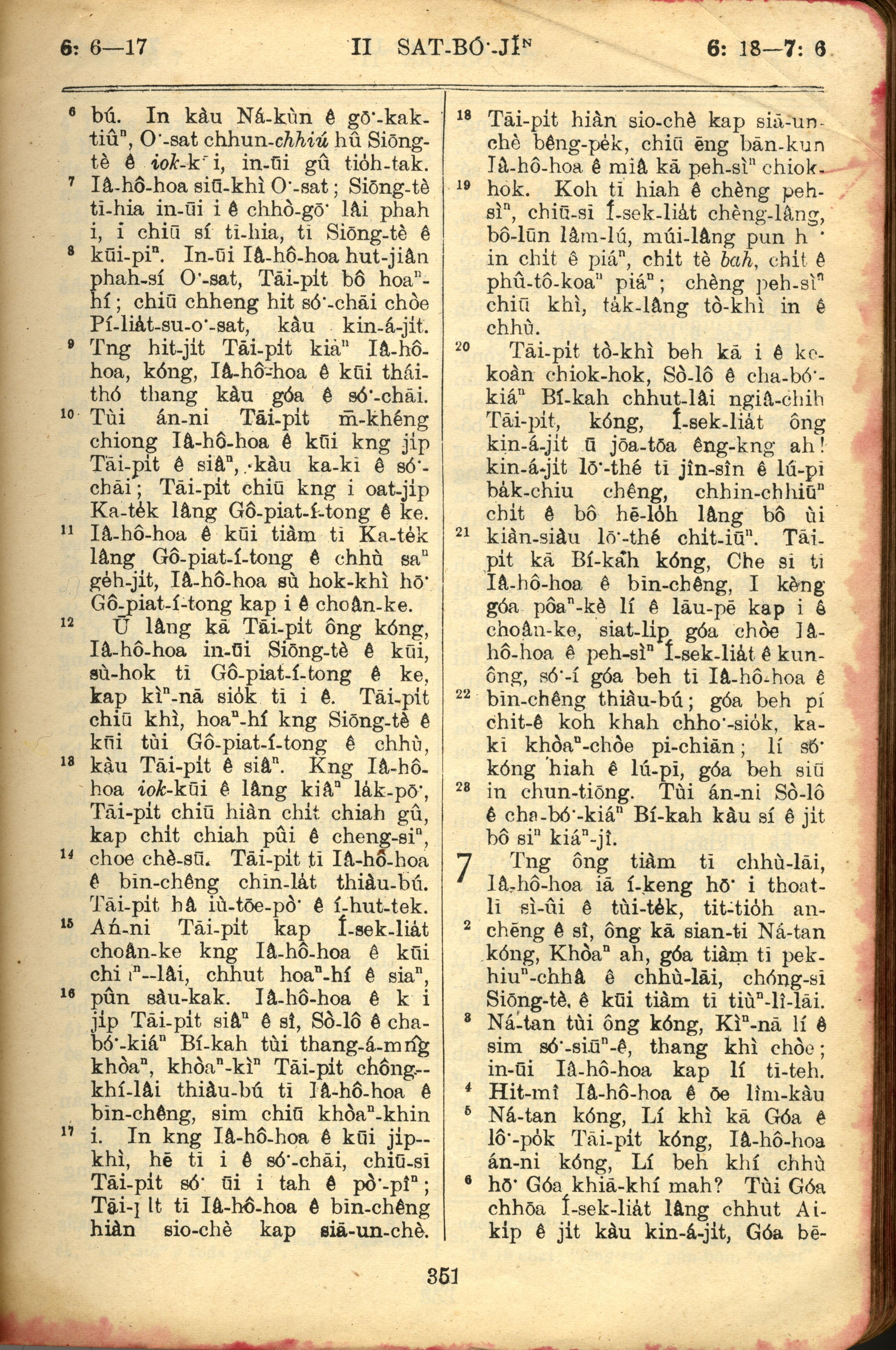 1957年巴克禮全羅台語聖經串珠版 撒母耳記下 6 章 6 節到 7 章 6 節