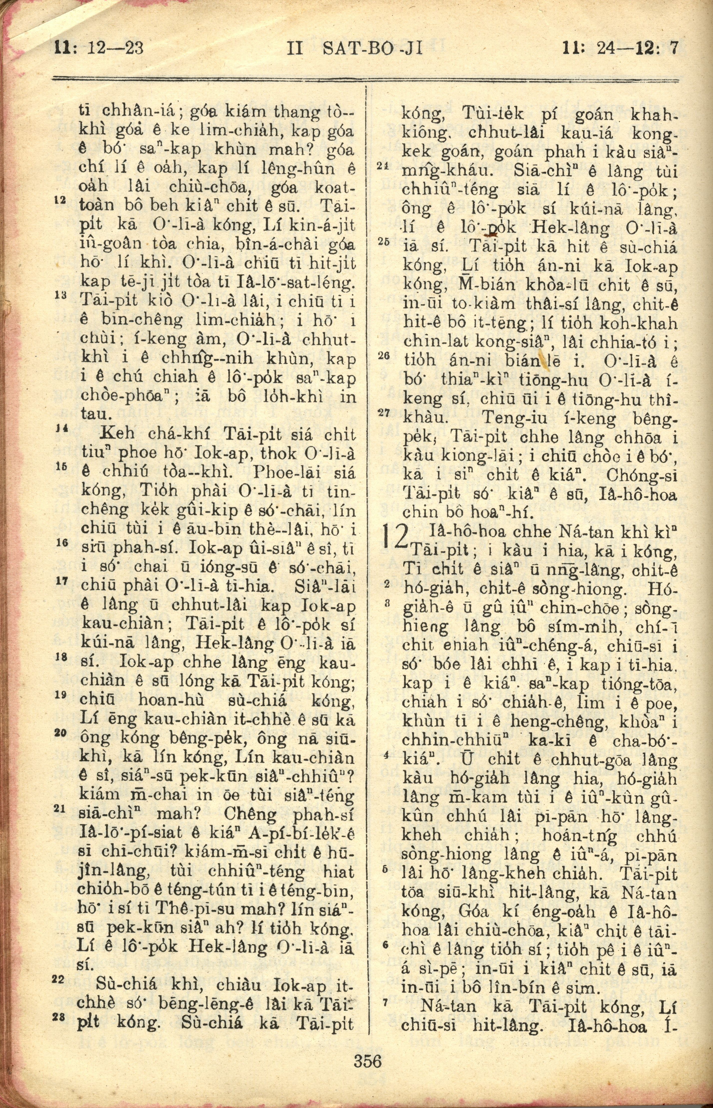 1957年巴克禮全羅台語聖經串珠版 撒母耳記下 11 章 12 節到 12 章 7 節