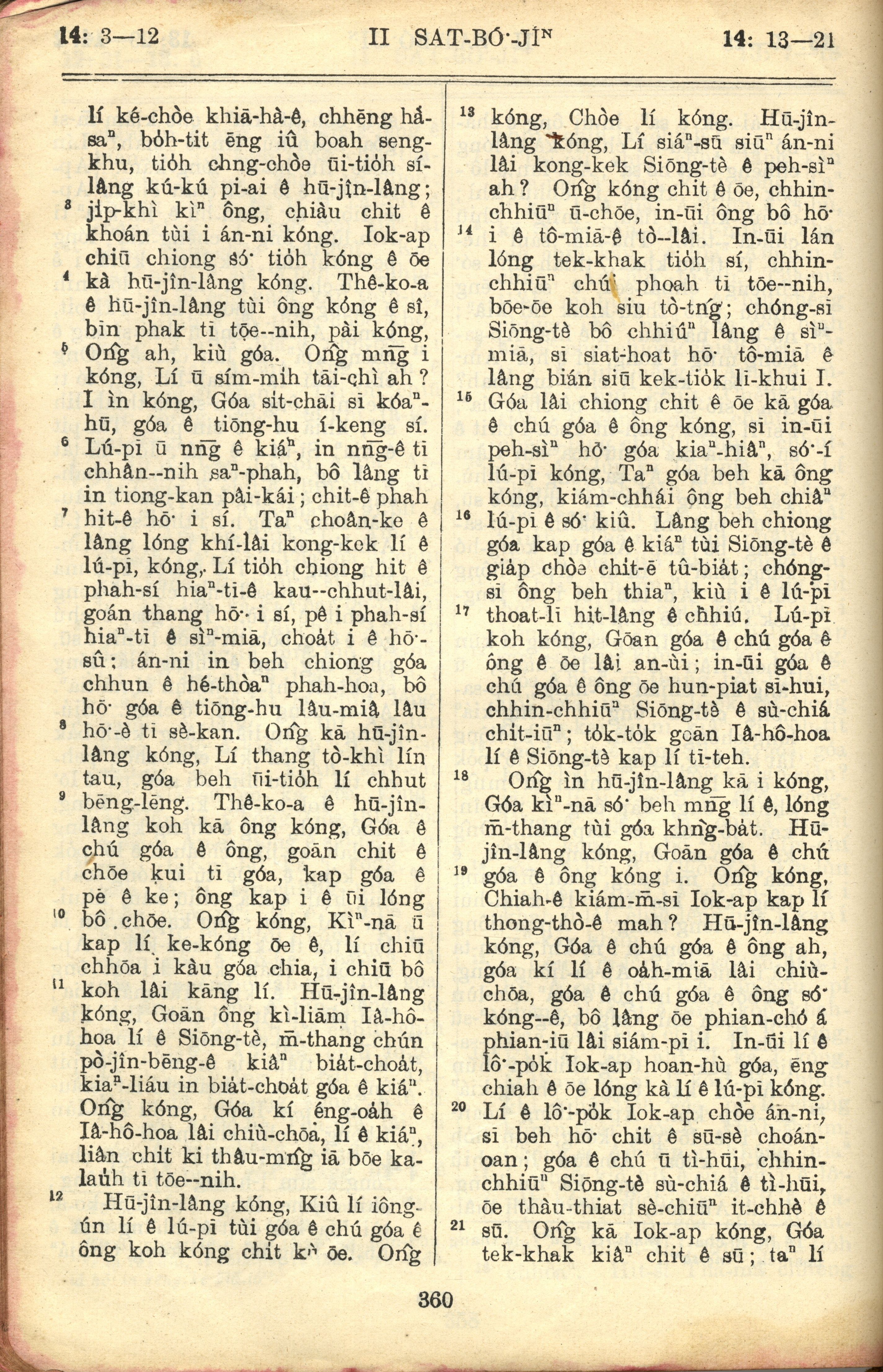 1957年巴克禮全羅台語聖經串珠版 撒母耳記下 14 章 3 節到 14 章 21 節