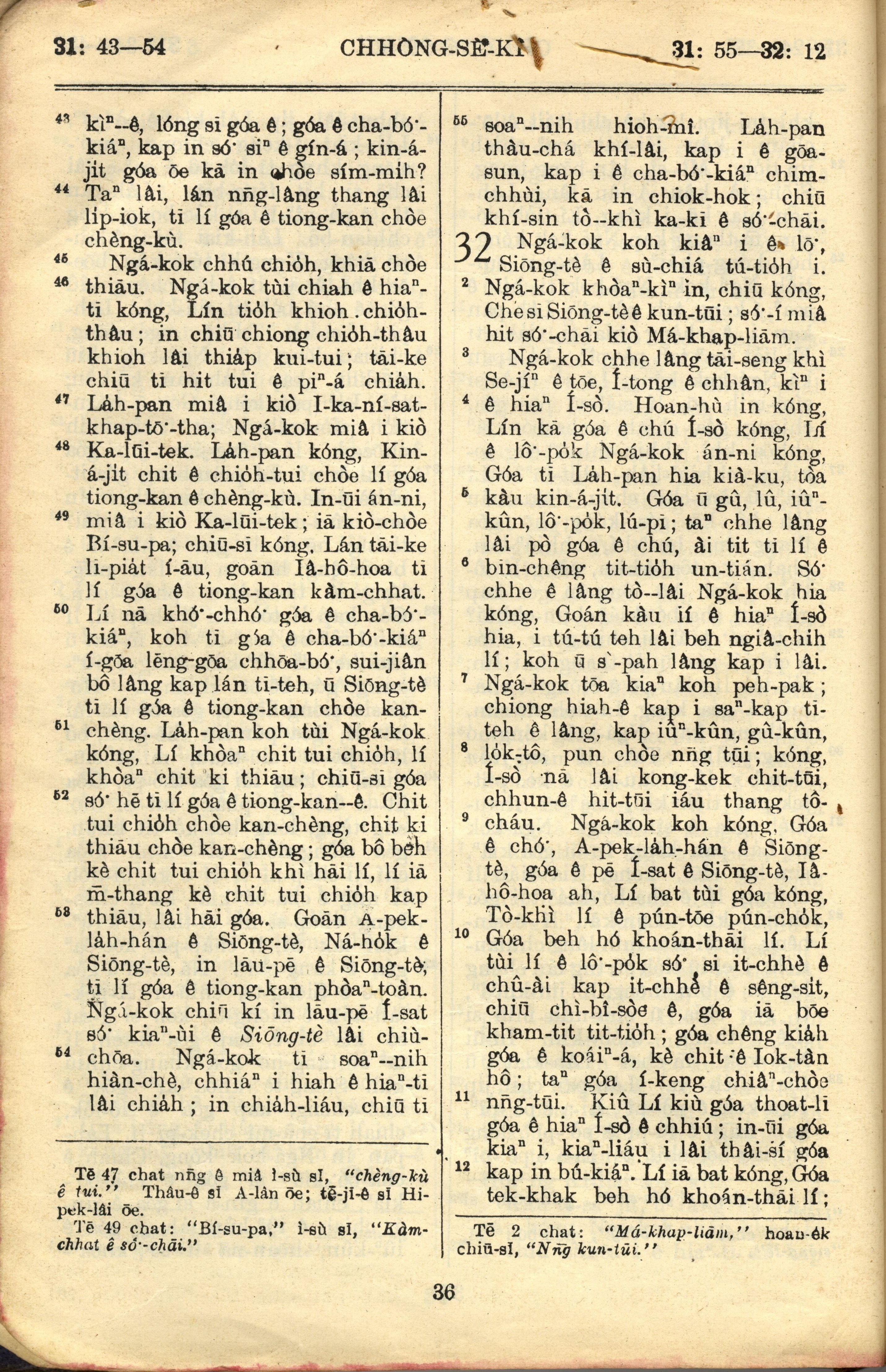 1957年巴克禮全羅台語聖經串珠版 創世記 31 章 43 節到 32 章 12 節