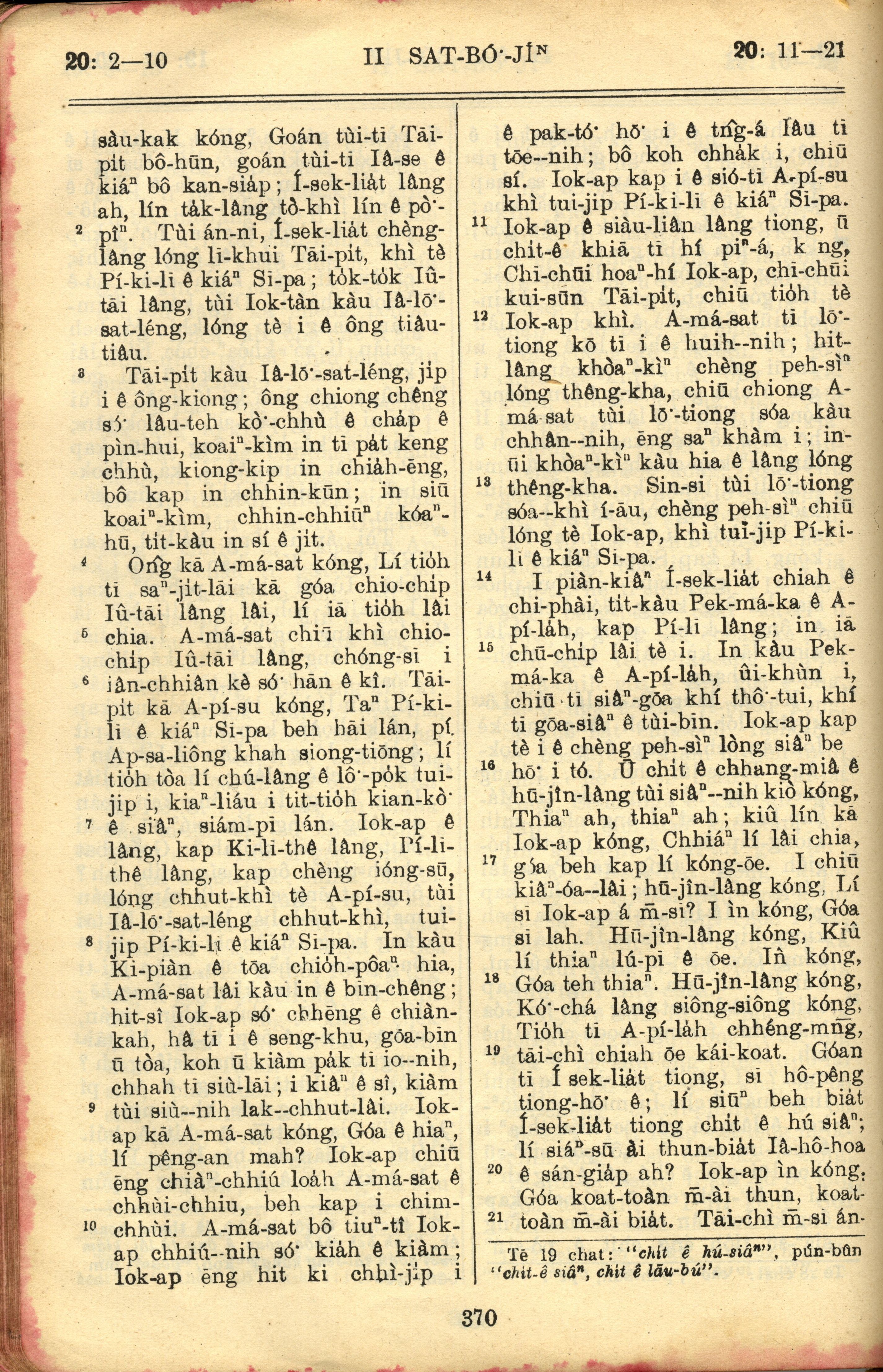 1957年巴克禮全羅台語聖經串珠版 撒母耳記下 20 章 2 節到 20 章 21 節