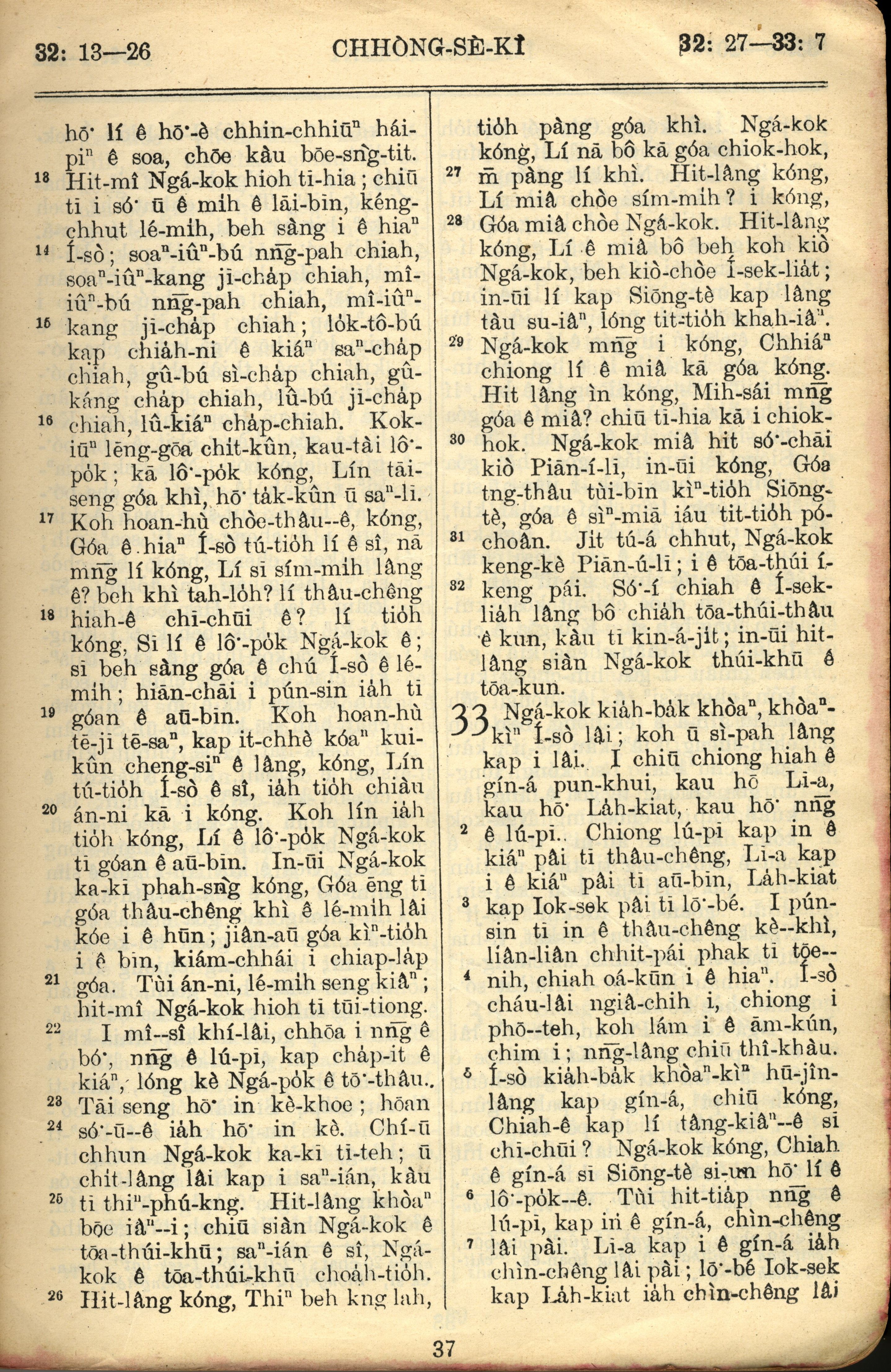 1957年巴克禮全羅台語聖經串珠版 創世記 32 章 13 節到 33 章 7 節