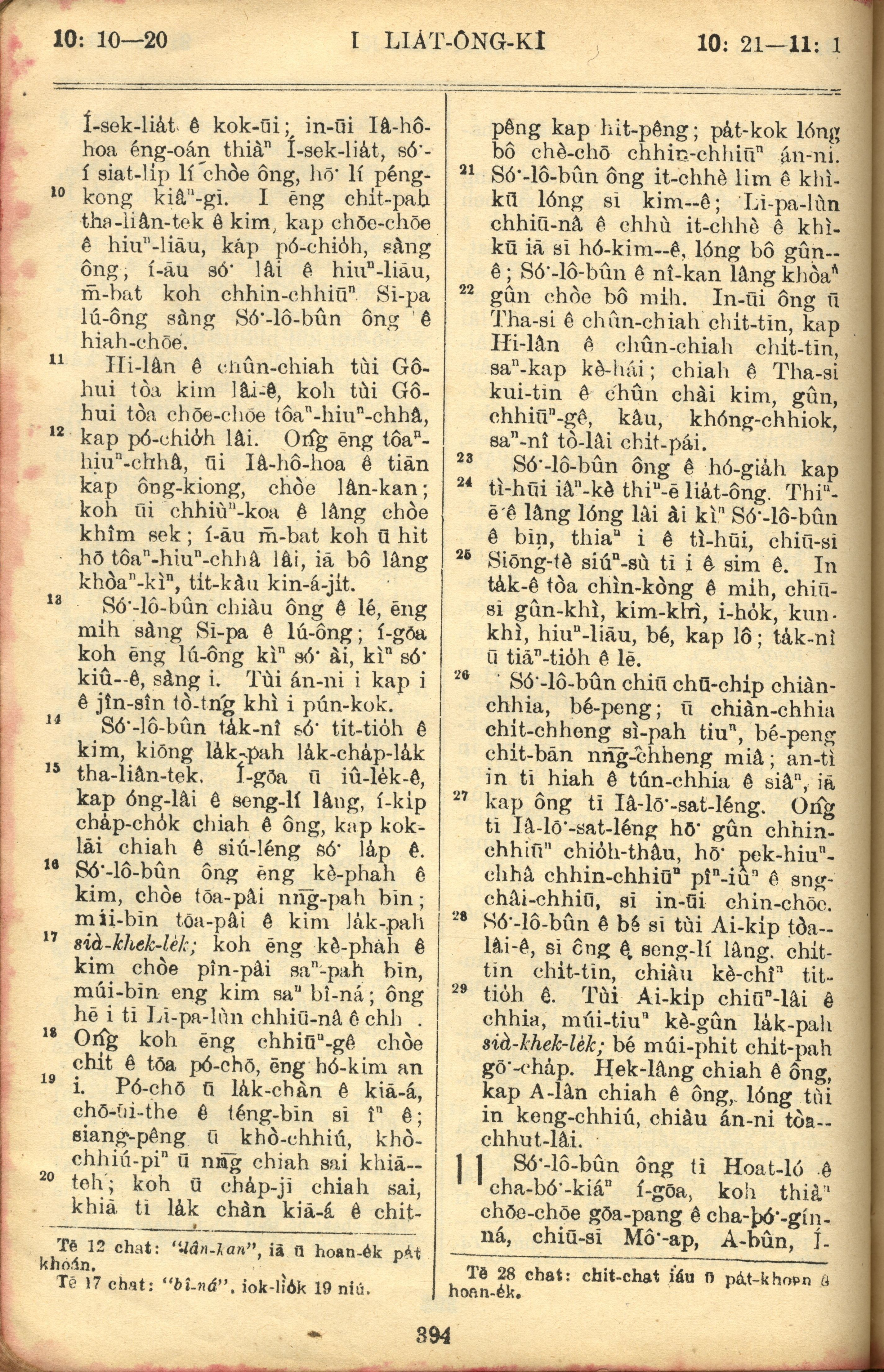 1957年巴克禮全羅台語聖經串珠版 列王紀上 10 章 10 節到 11 章 1 節