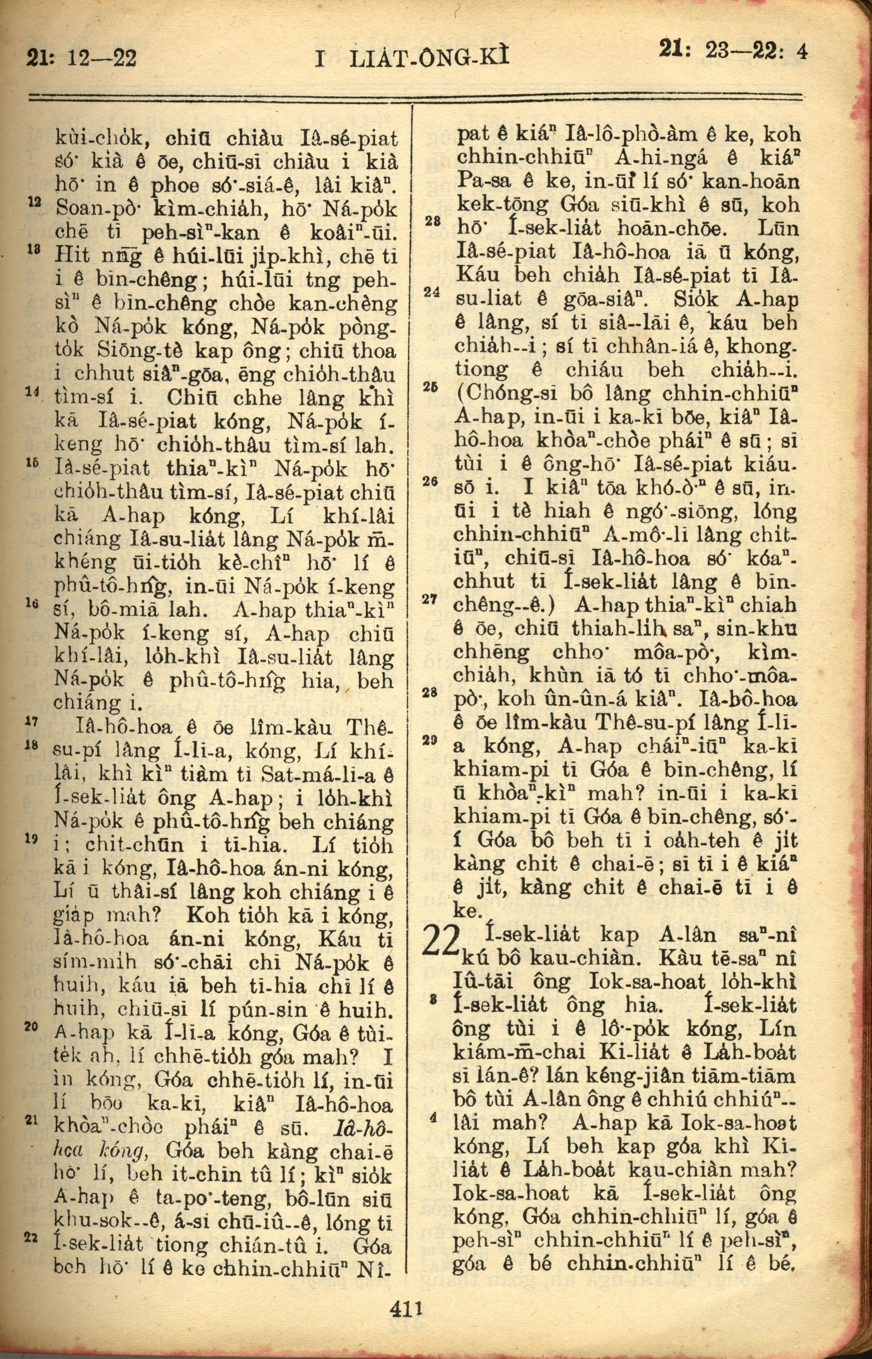 1957年巴克禮全羅台語聖經串珠版 列王紀上 21 章 12 節到 22 章 4 節