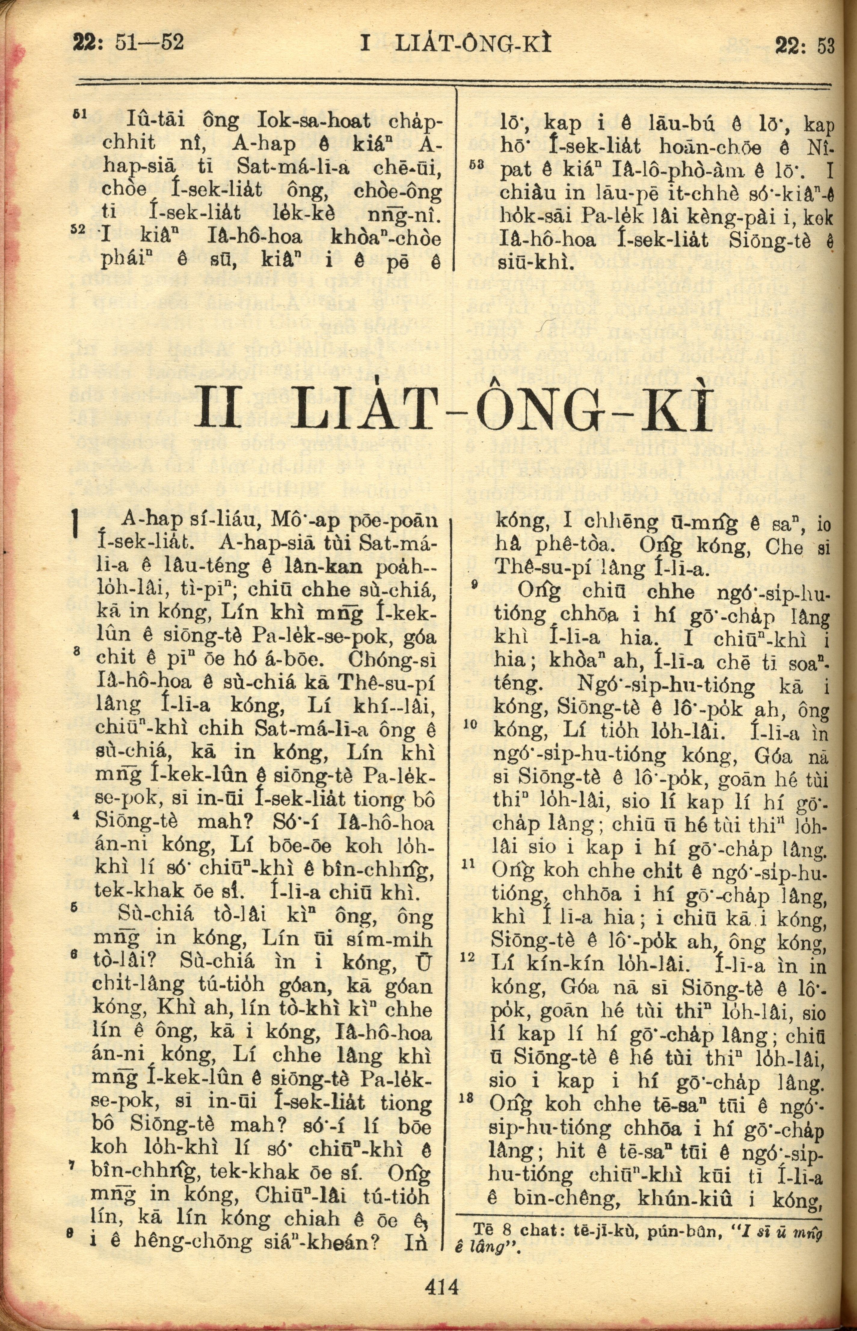 1957年巴克禮全羅台語聖經串珠版 列王紀下 1 章 1 節到 1 章 13 節