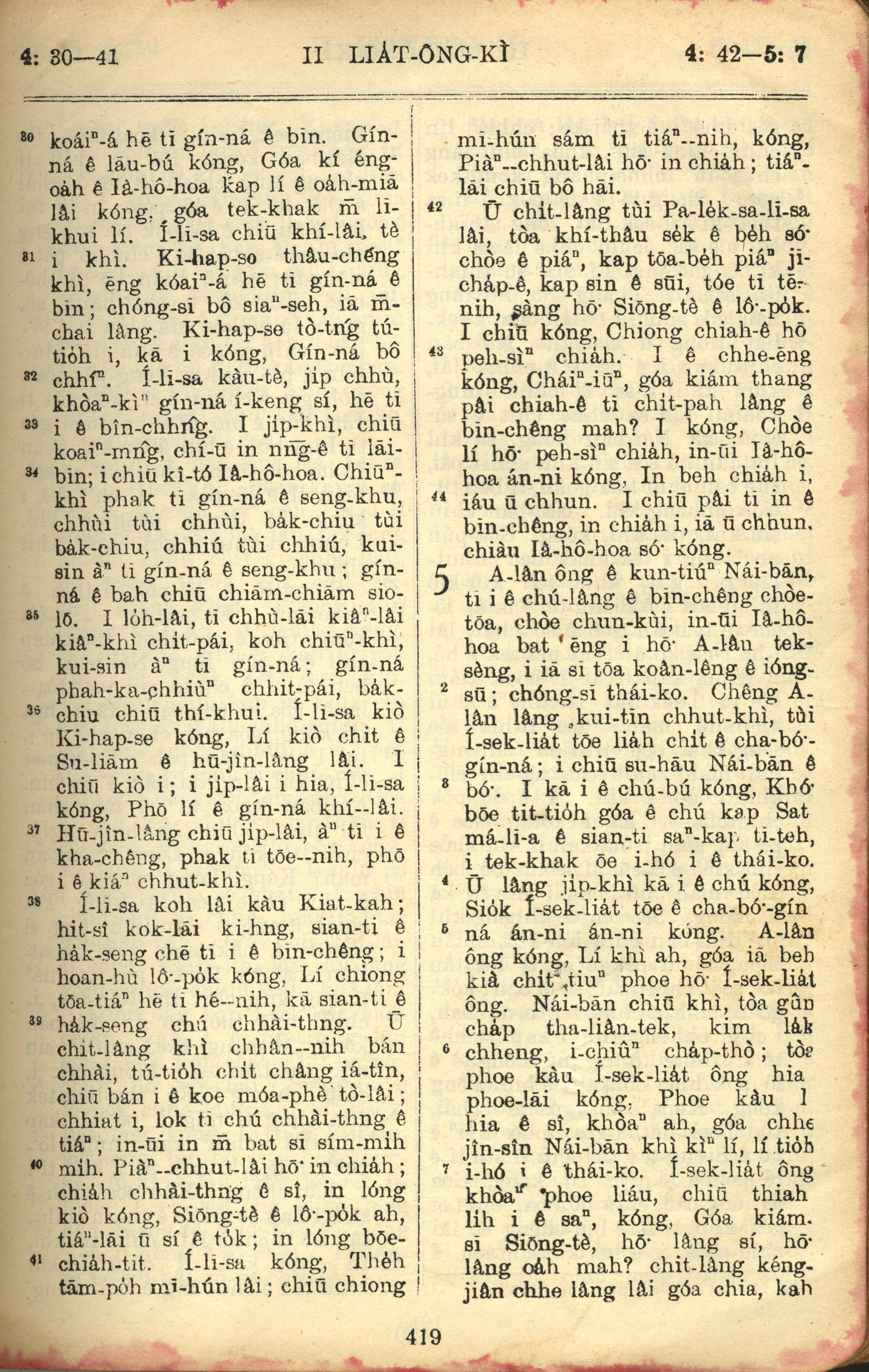 1957年巴克禮全羅台語聖經串珠版 列王紀下 4 章 30 節到 5 章 7 節