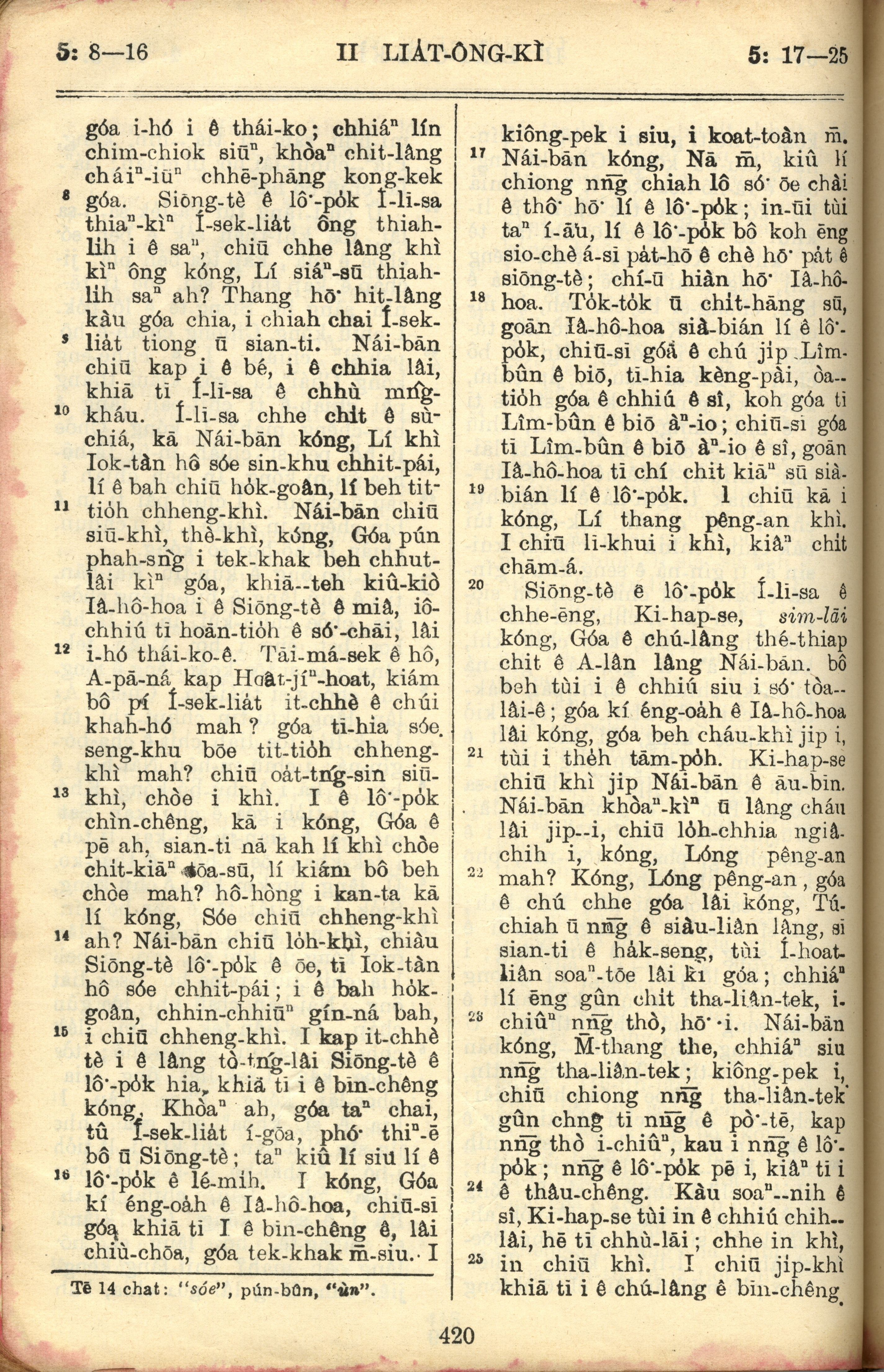 1957年巴克禮全羅台語聖經串珠版 列王紀下 5 章 8 節到 5 章 25 節