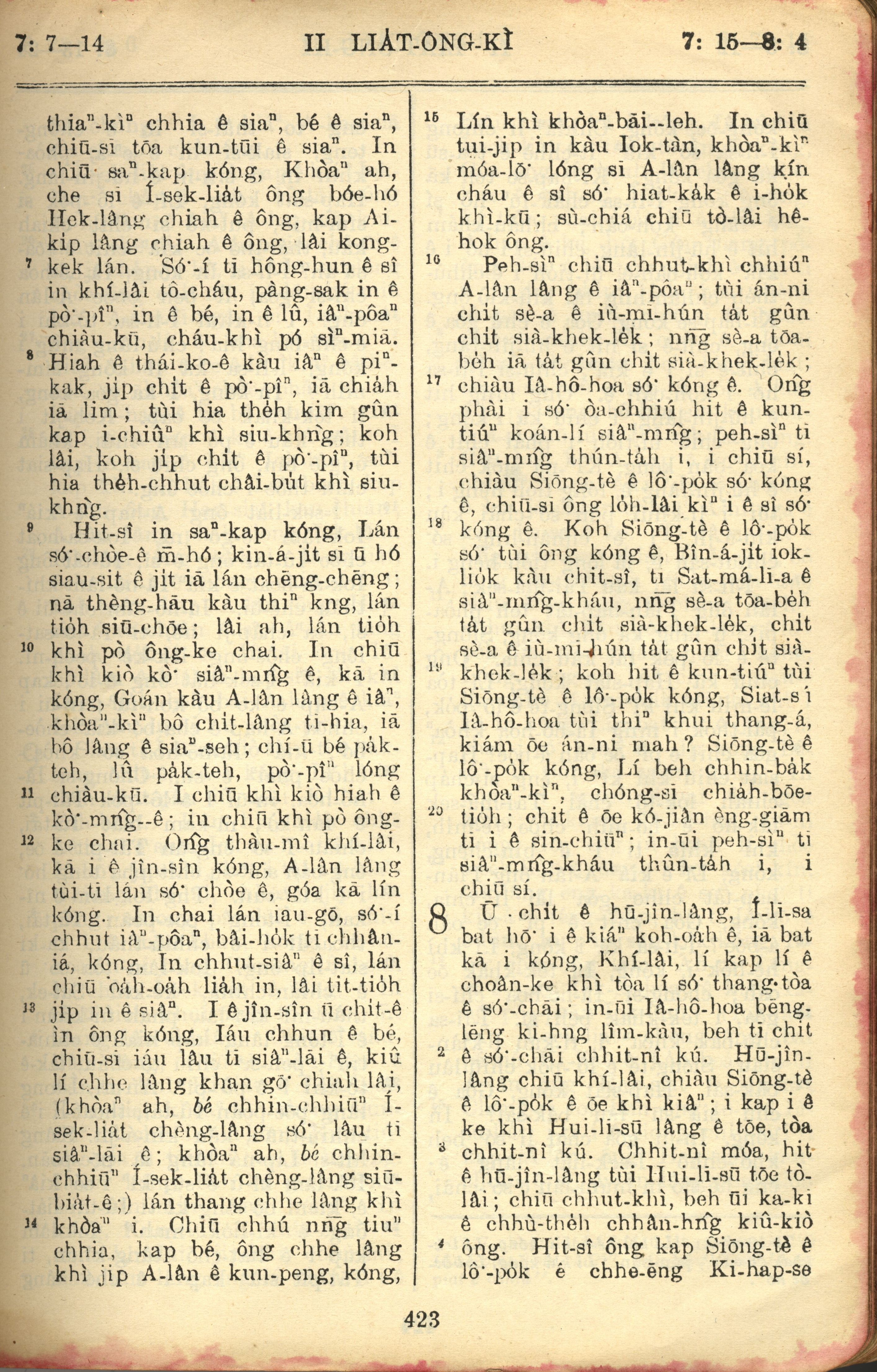 1957年巴克禮全羅台語聖經串珠版 列王紀下 7 章 7 節到 8 章 4 節