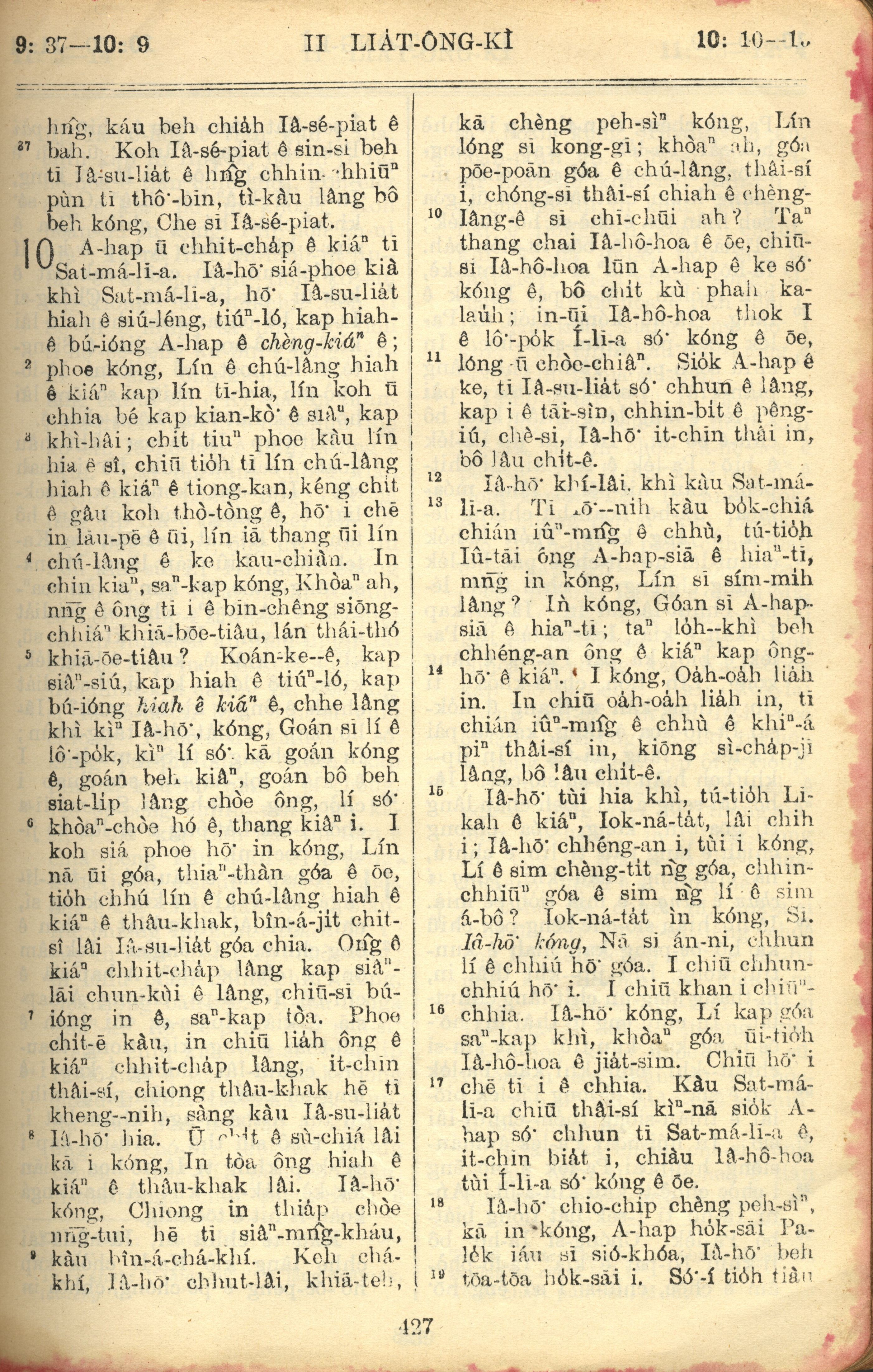1957年巴克禮全羅台語聖經串珠版 列王紀下 9 章 37 節到 10 章 19 節